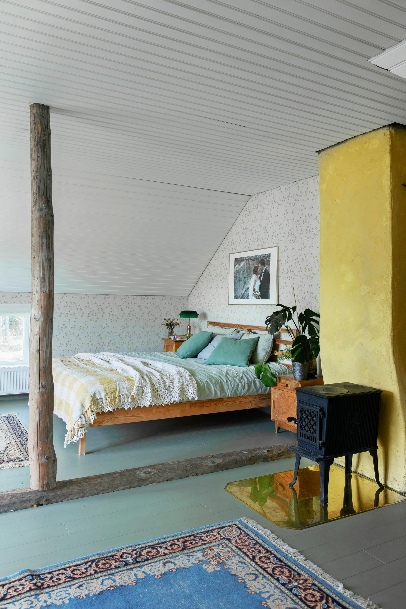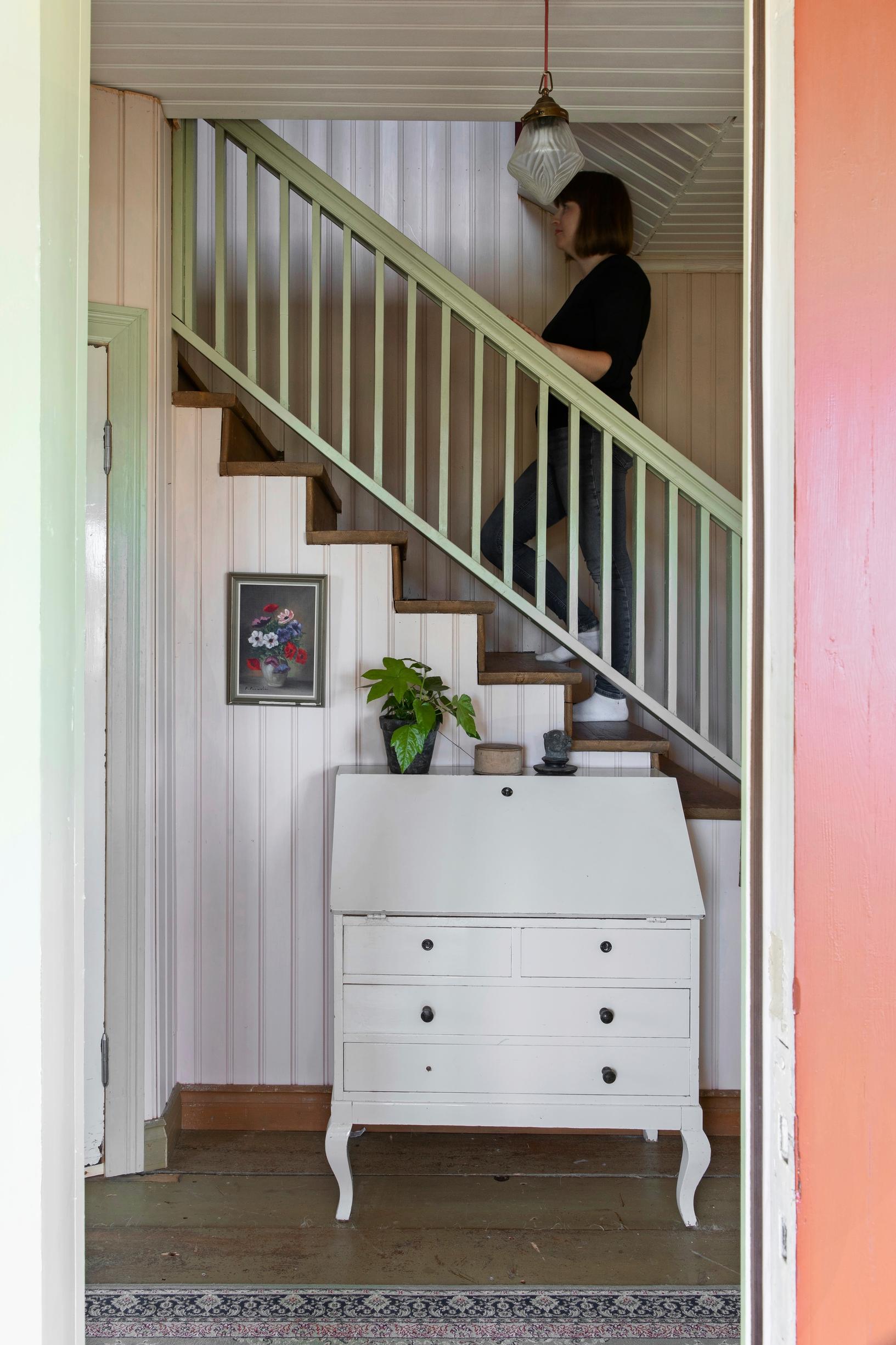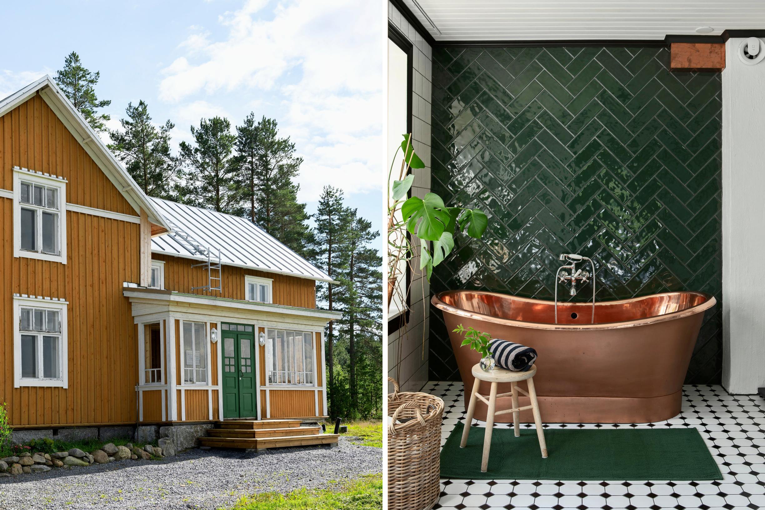 Finnish Sara and Matias Back combined two of their dreams when they moved a 1920s log house to their dream lot on family land. They salvaged every original piece they could from the structure. “The reassembled original staircase creaks just the right way,” Sara says.