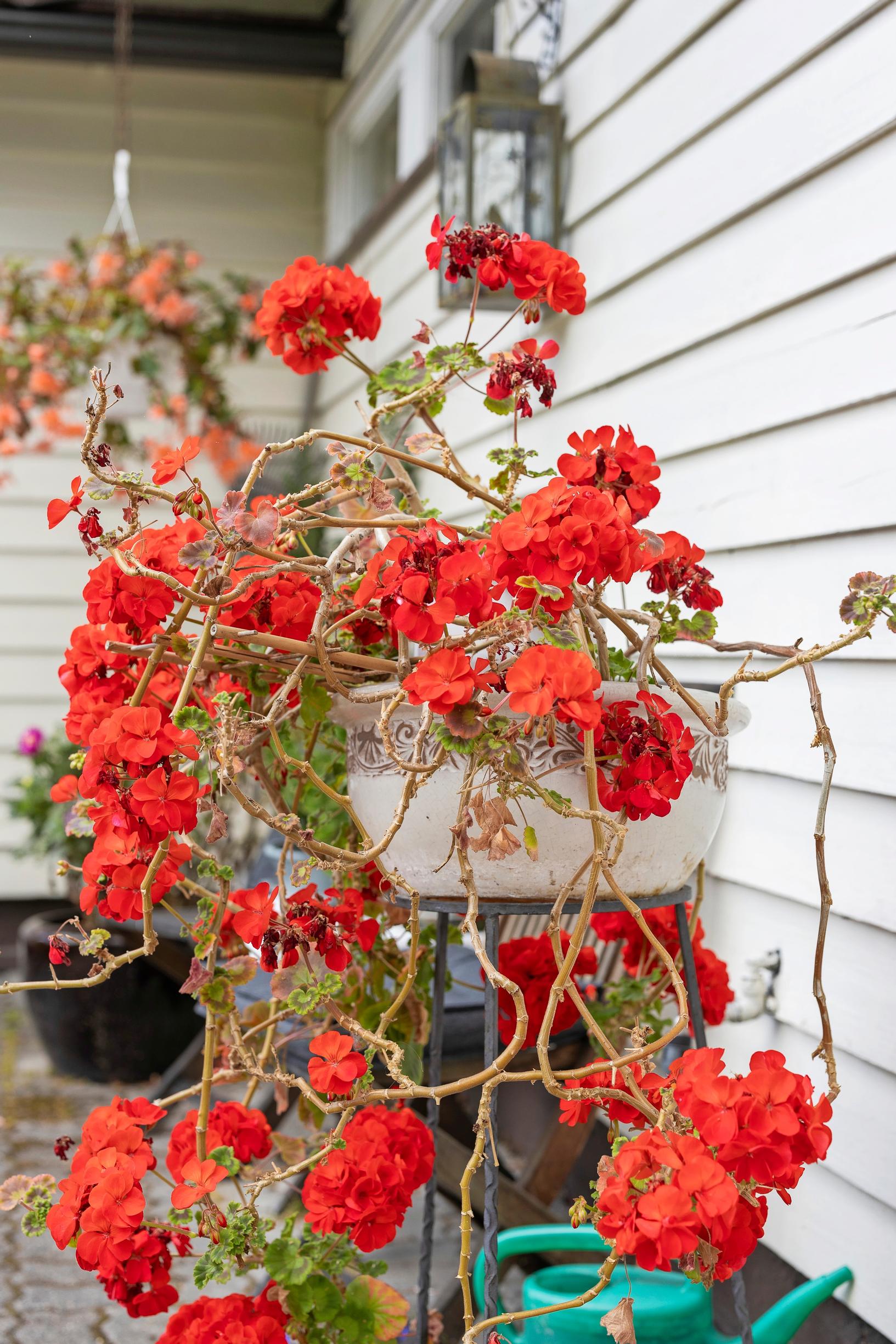 Right at the front door, it’s clear that a skilled green thumb lives here. On the glass-enclosed veranda, snake plants, bougainvilleas, geraniums, and numerous cacti are thriving. In the garden, traditional perennials grow harmoniously alongside asparagus, Jerusalem artichokes, and an age-old strain of rhubarb. Lovage blossoms sway above our heads, and peonies grow like lush shrubs. Autumn phlox planted along the vegetable garden’s edge provides a splash of color in late August.