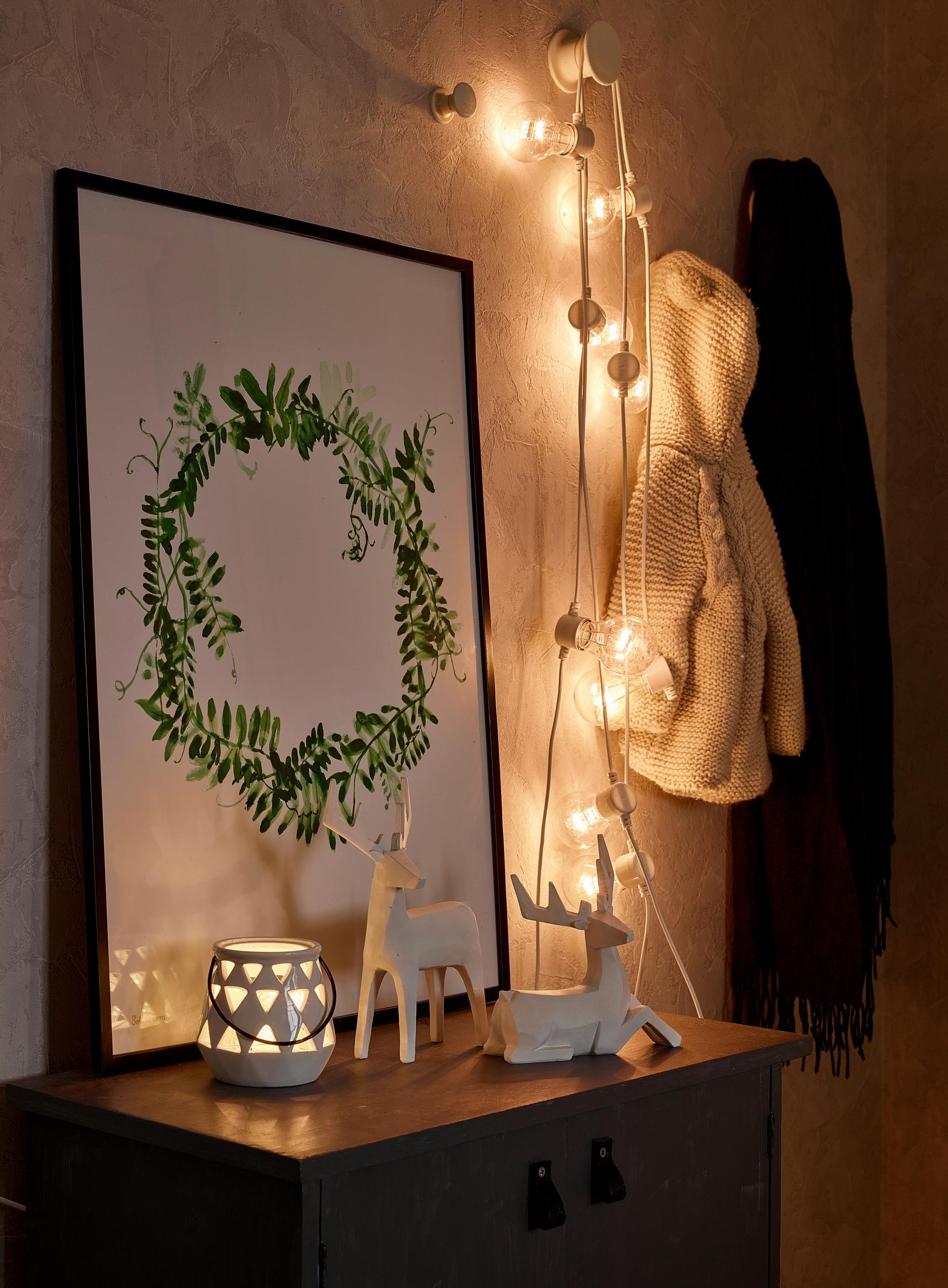 String lights bring a soft, moody glow. It’s lovely to come home when there’s a twinkle waiting in the entryway.