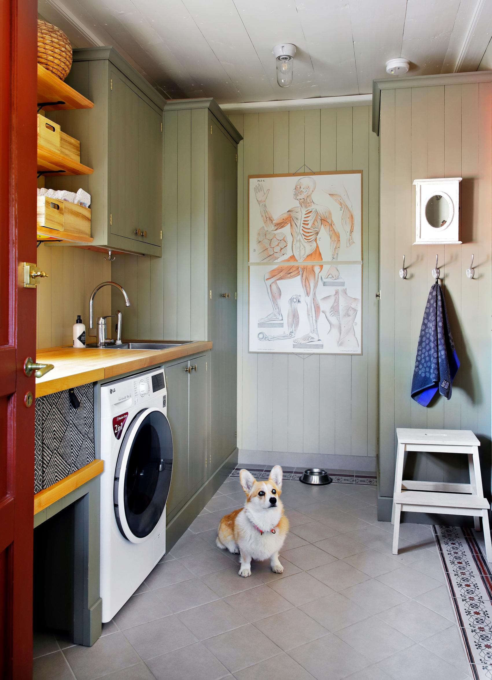 Patrik and his father also built the cabinets for the laundry room and kitchen out of robust beadboard paneling.