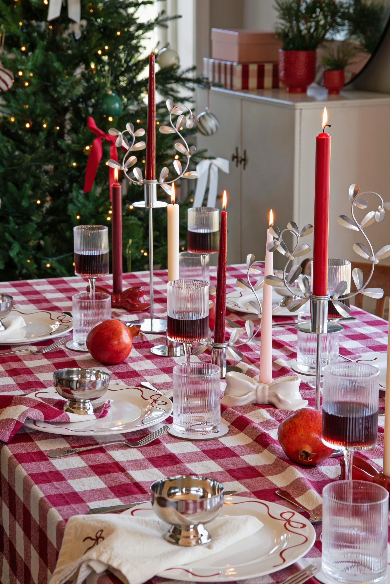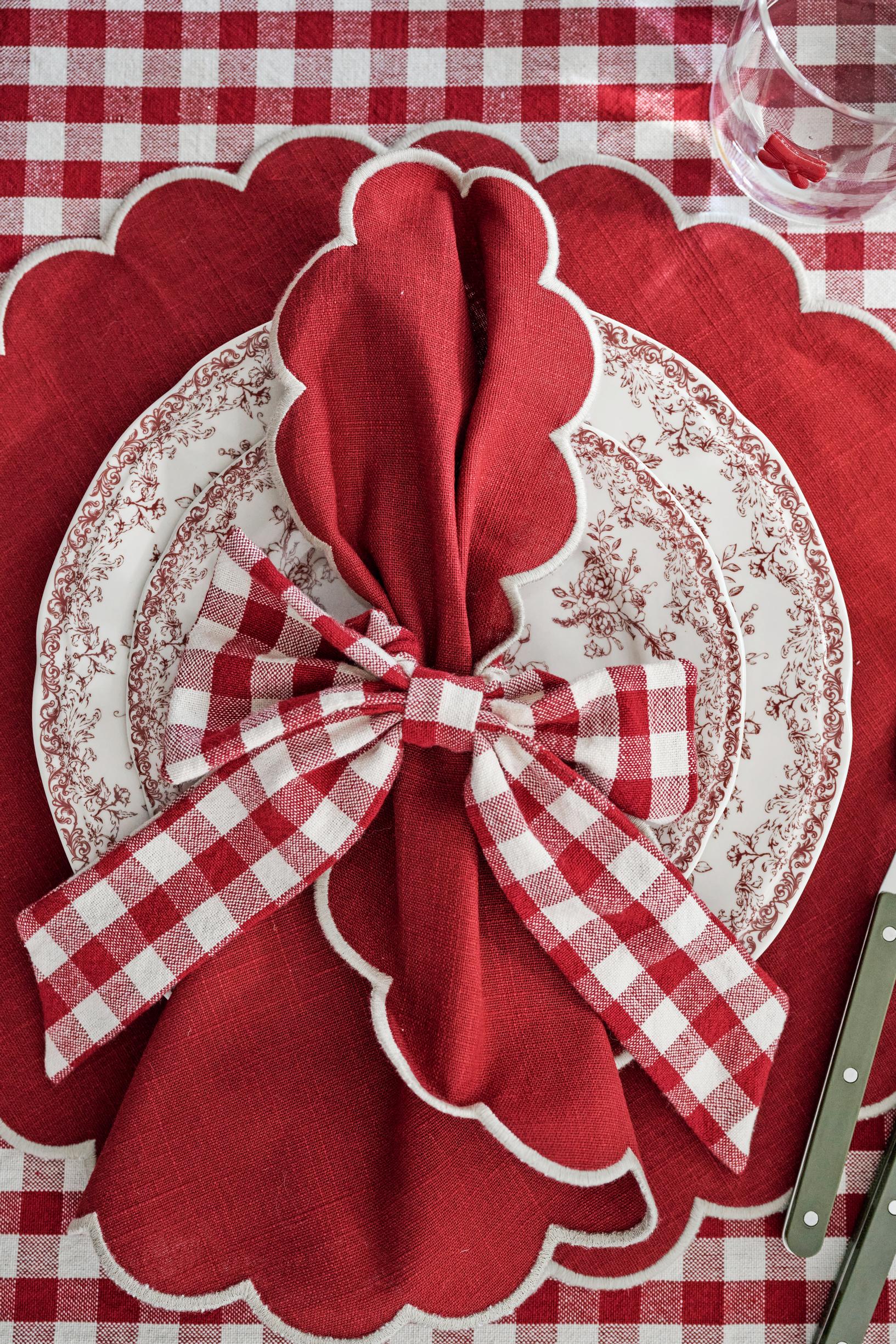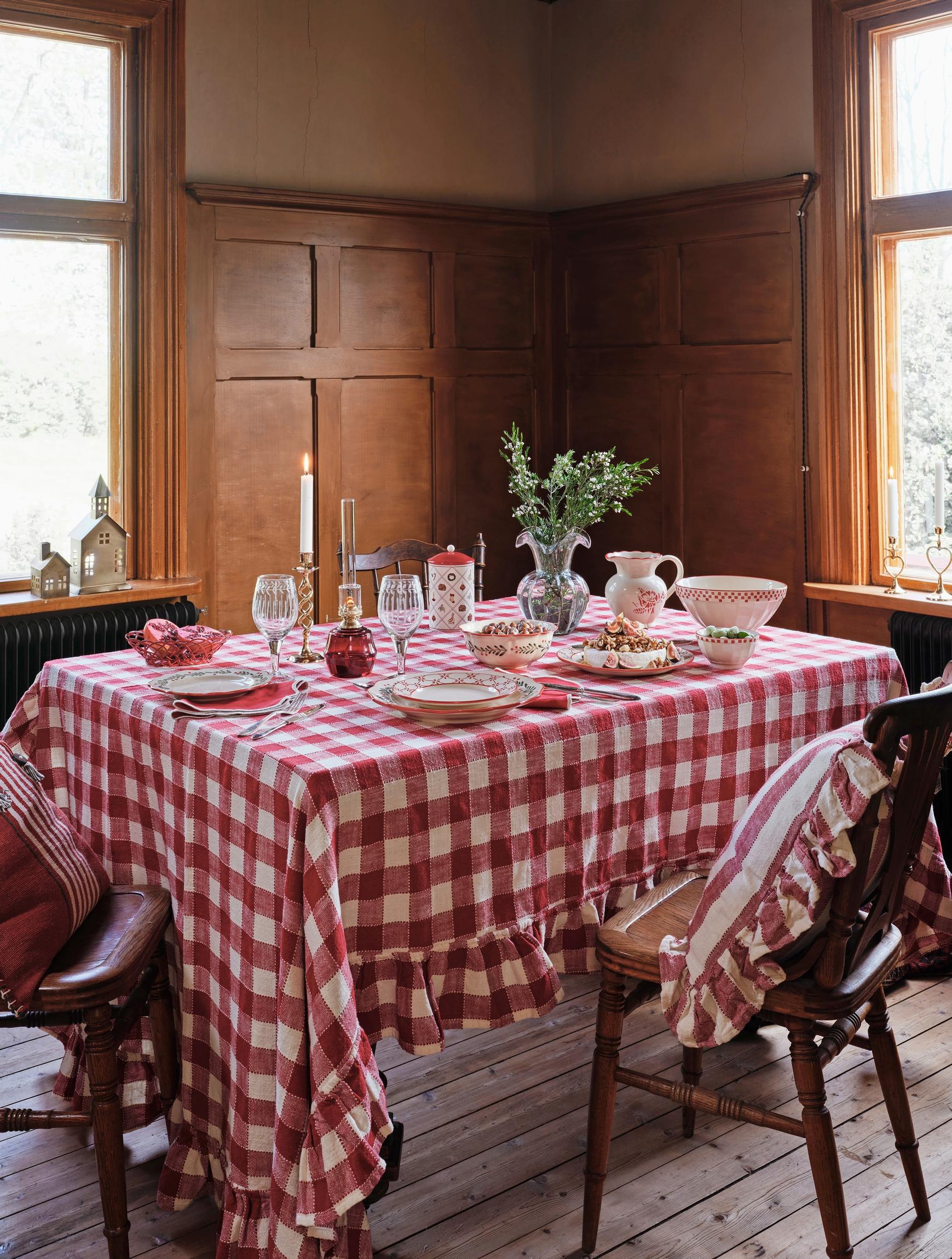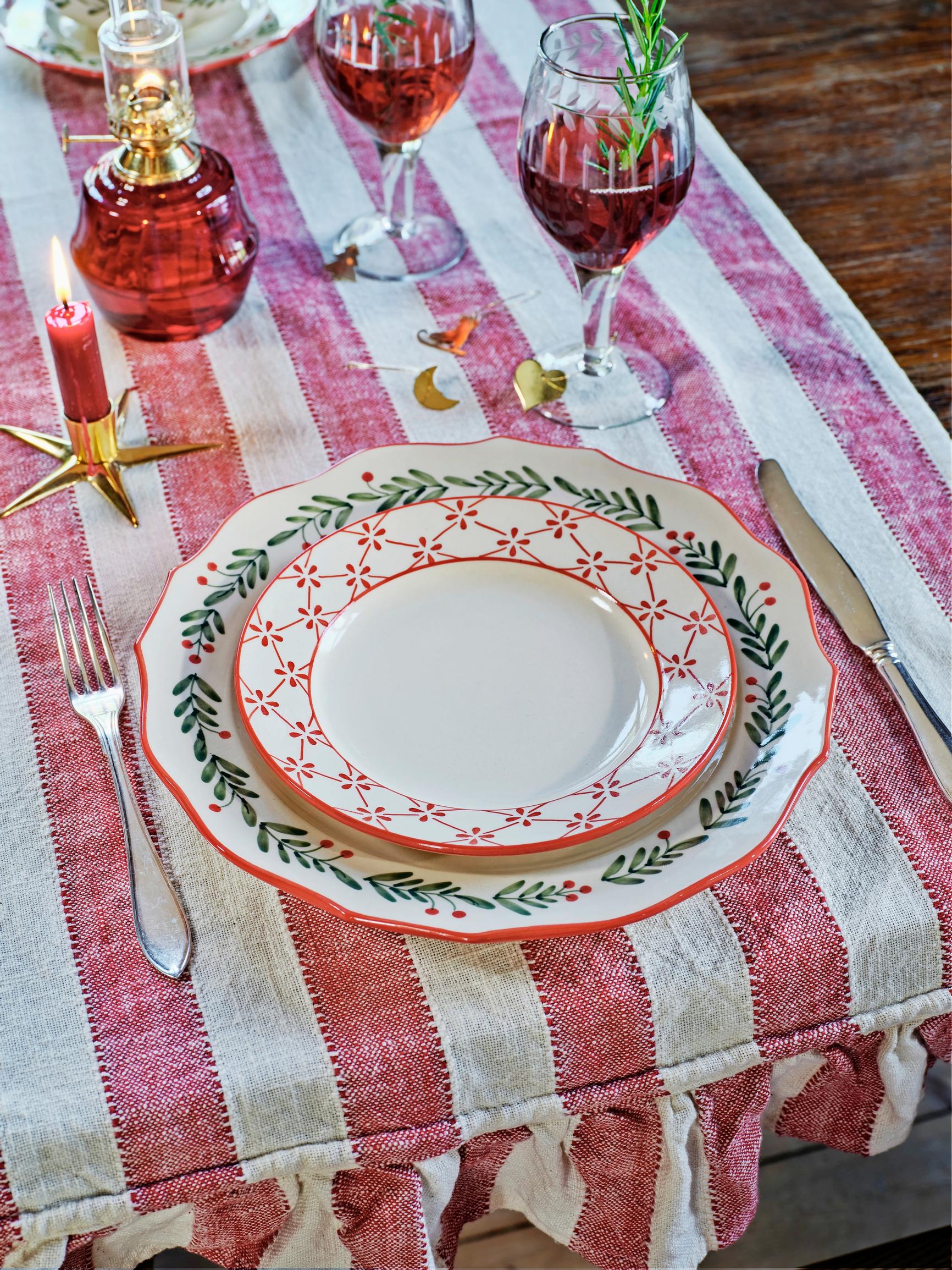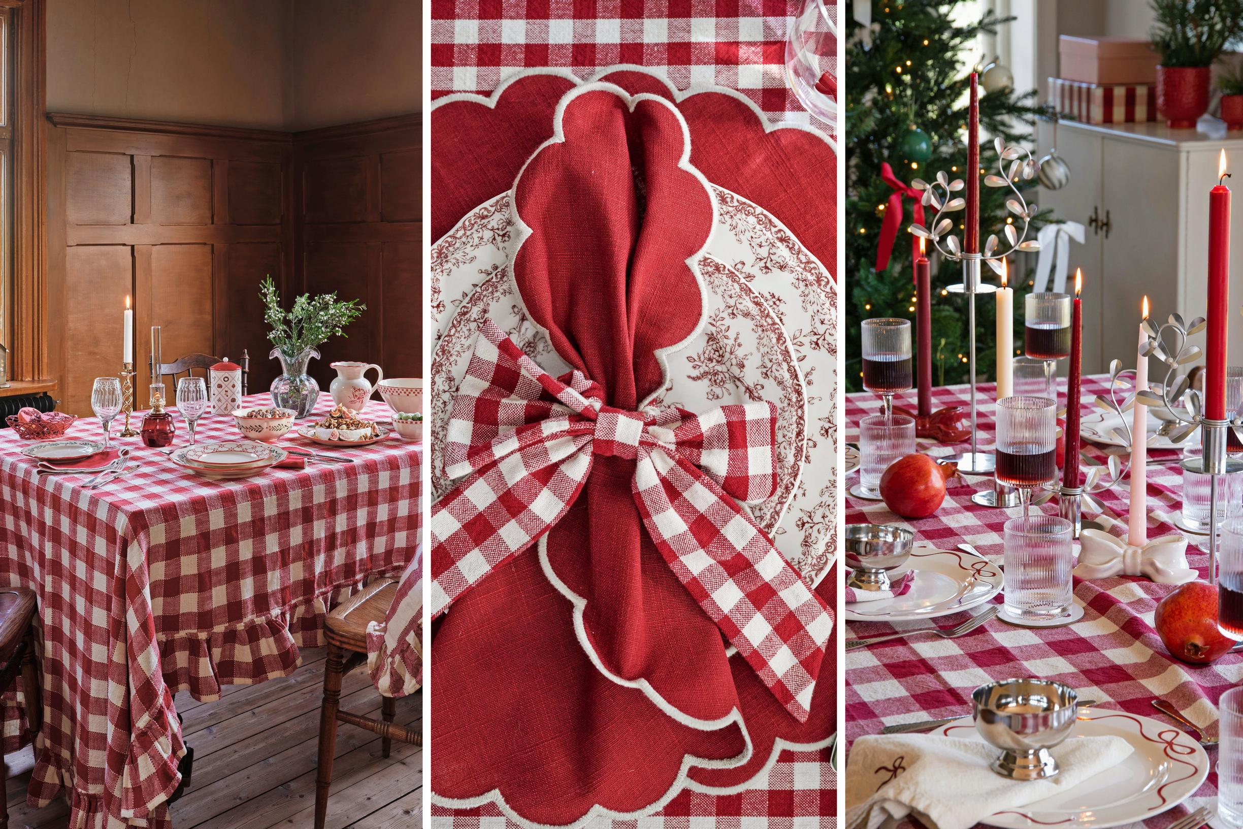 A red table setting completes the best moment of Christmas. Choose checks, stripes, or frills—or all at once.