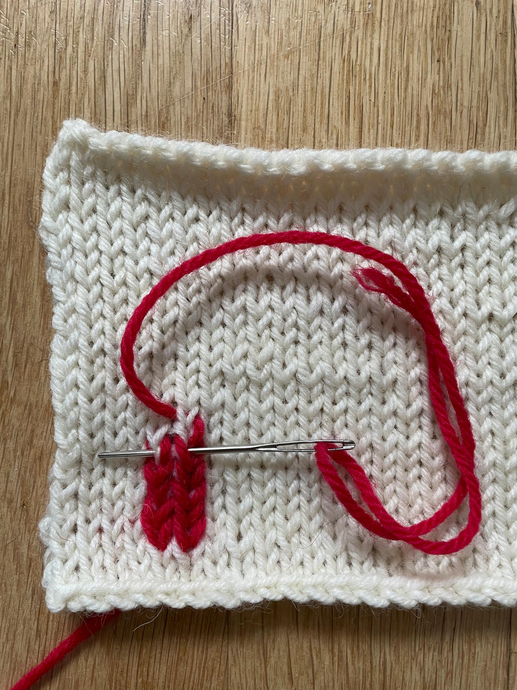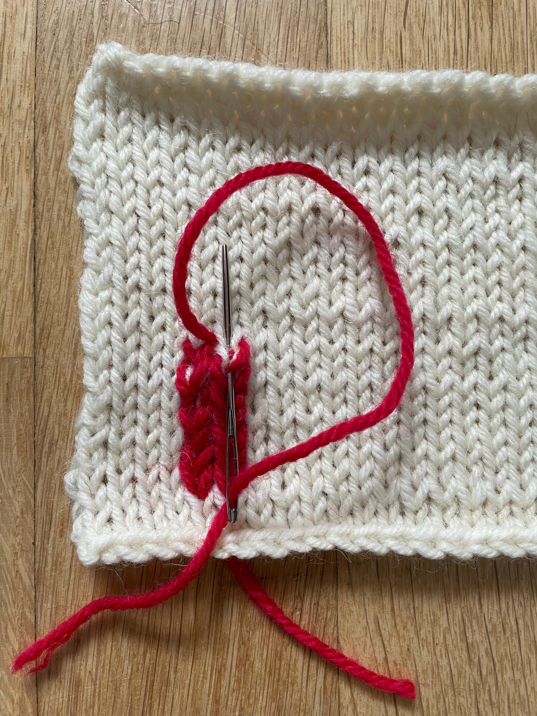 - Choose a yarn for the duplicate stitching that matches or is slightly thicker than your mitten yarn, so it covers the background color well. Marking the placement of the numbers on your mittens with stitch markers can help with alignment.