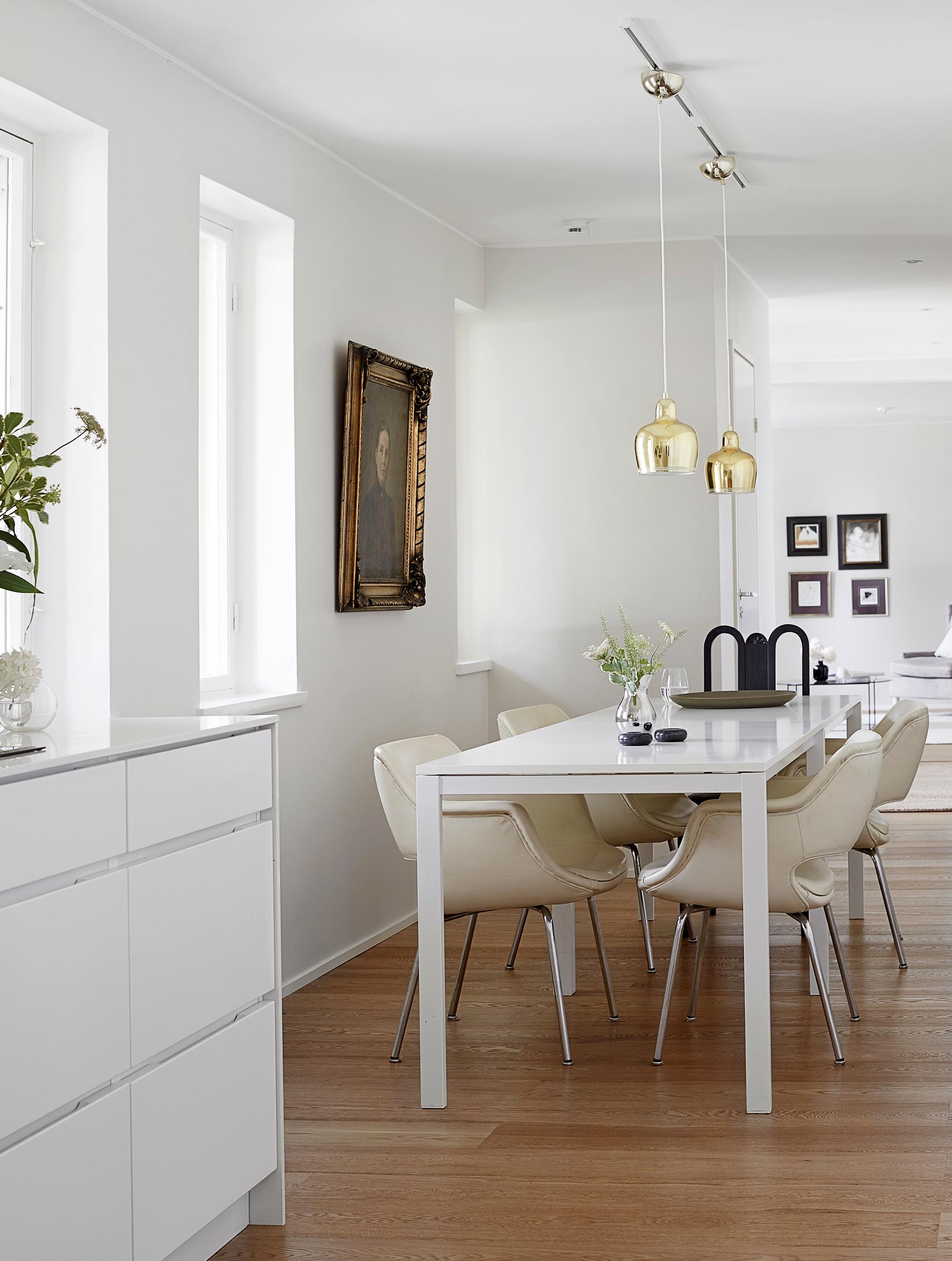 If everything is white from floor to ceiling, it’s harder to get a sense of the space, and the interior can feel clinical. Natural materials such as wood, cork, or stone, along with brass and copper, bring a touch of warmth and texture to an otherwise white interior.