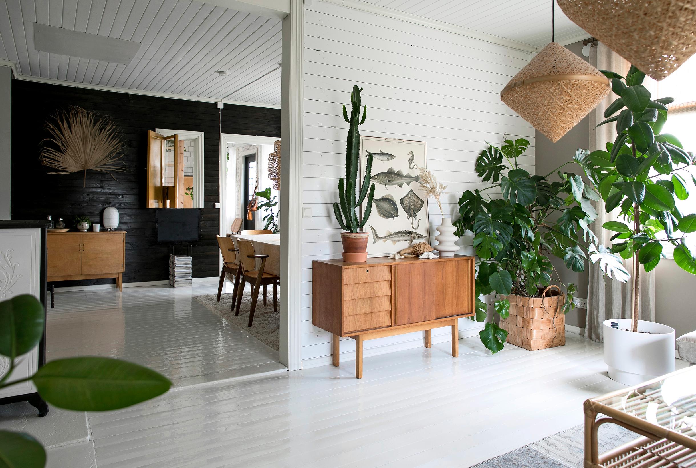 When picking a wall color, remember to consider the floor too. If the floor has a warm wood tone, opt for a white with a hint of beige, like Tikkurila’s F468 Meringue. Gray floors can make white walls seem bluish, so a pure white paint is often the best choice.