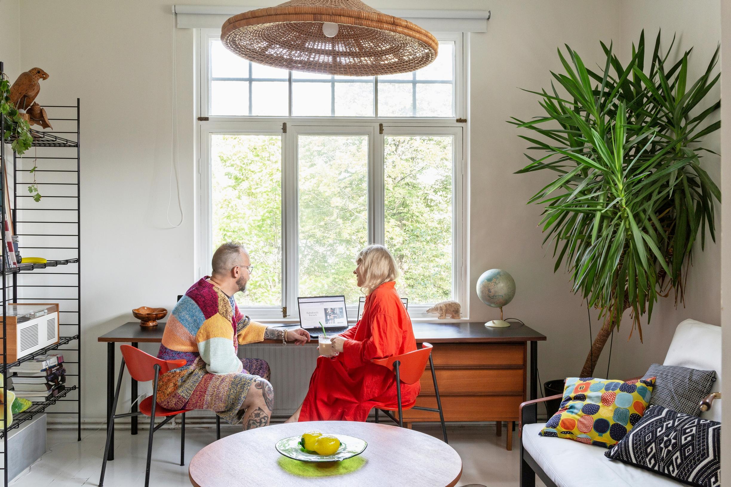 Tanja: The house was originally built as a residence for Finnish railway company VR’s station master, who, judging by its imposing design, must have been an important man. Later, it was sometimes used to hold prisoners when the nearby bailiff’s jail was full. The architecture is fascinating. The exterior is clad with bricks that look like stone boulders, which we had never seen before. I fell in love with it immediately when it popped up on my screen. I could already picture us living there. When I showed my find to Tomi, we learned he knew the house from a previous visit. Our hobby is buying, collecting, and selling old items, and Tomi had once come here to purchase chairs.