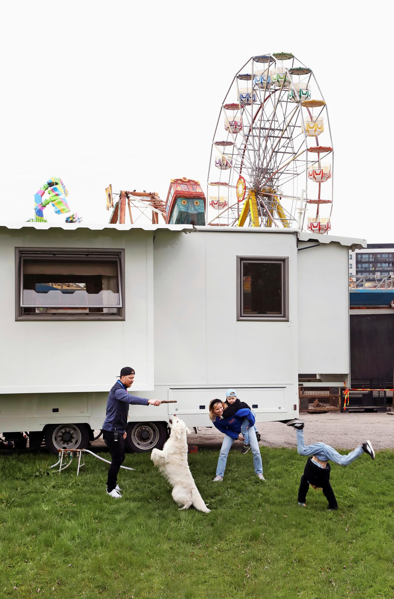 The carnival tours Finland from April to late September, visiting ten cities in all. Each time, Anna sets up the family’s home from scratch, placing photo frames in their spots, arranging throw pillows on the sofa, lining up the children’s toy boxes, and setting bath toys by the tub.