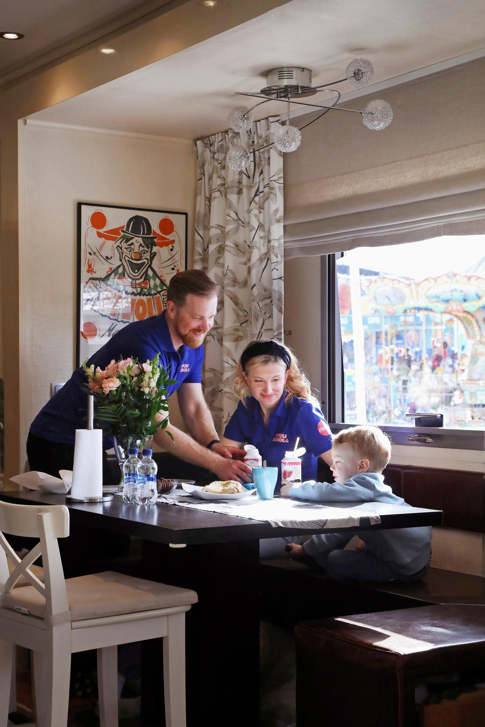 In summer, the children also move to the carnival. Anna, Ville, and the boys almost always eat breakfast together—no screens allowed. They try to have lunch and dinner together too, though that’s not always possible on carnival days since the workdays can be long, and one parent might still be at the carnival grounds.