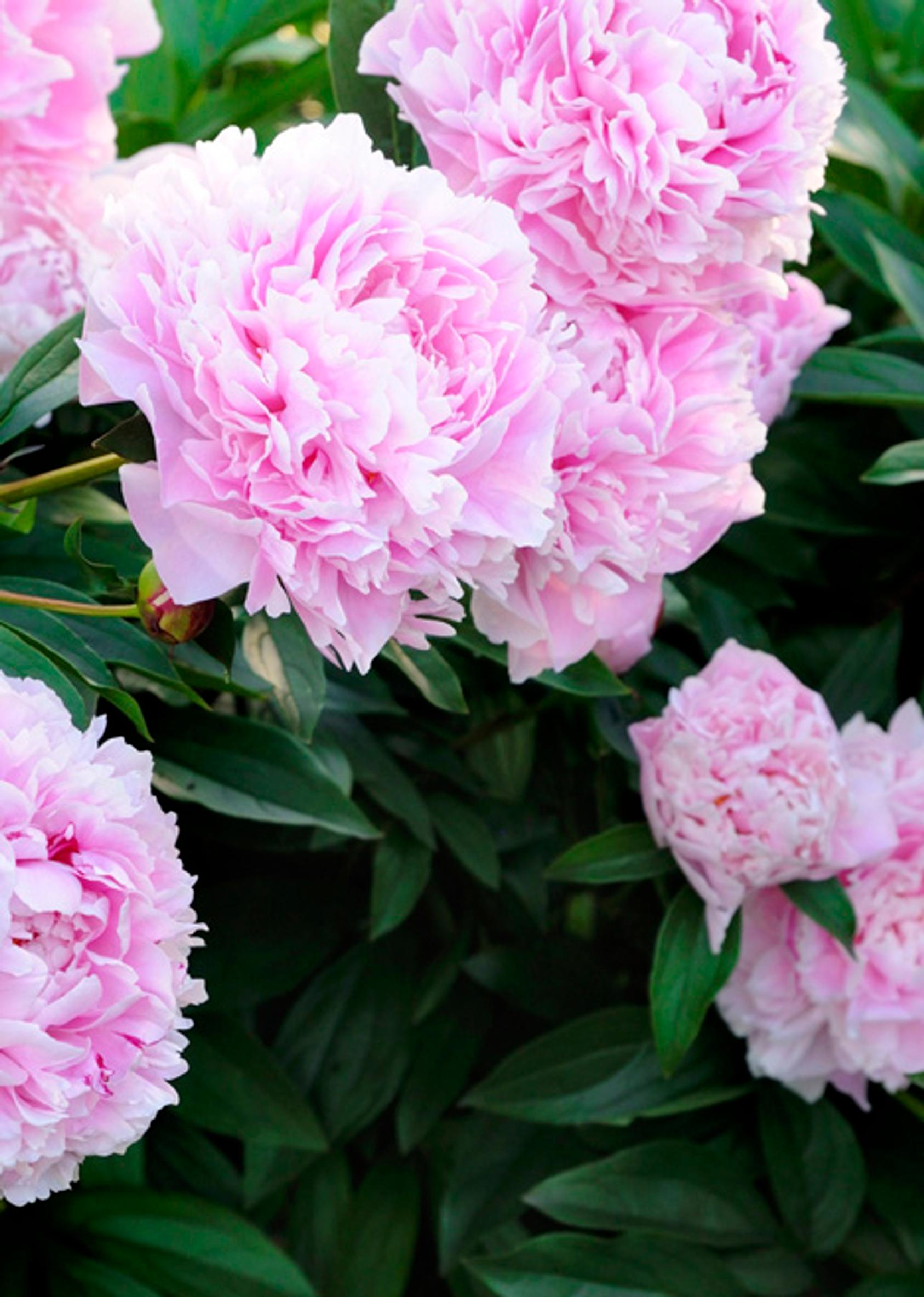 You can plant various types of peonies in the same bed about half a meter apart. They can also be planted individually among other perennials, provided the planting hole is sufficiently large and the peony doesn’t have to compete with more vigorous species.