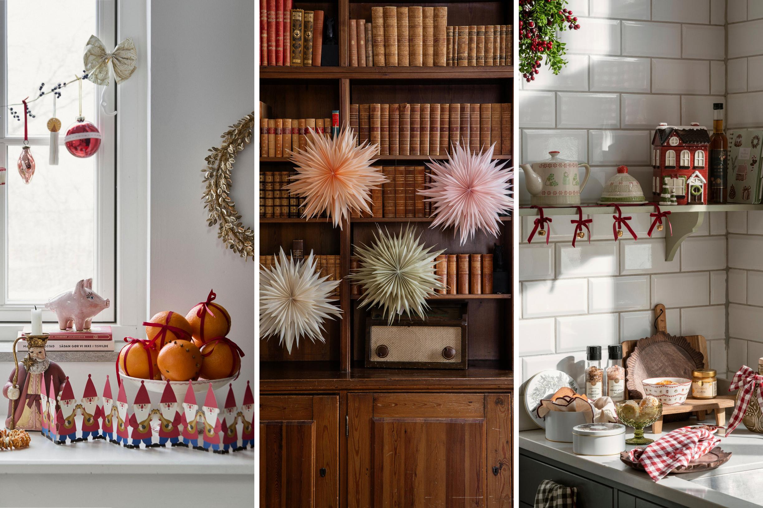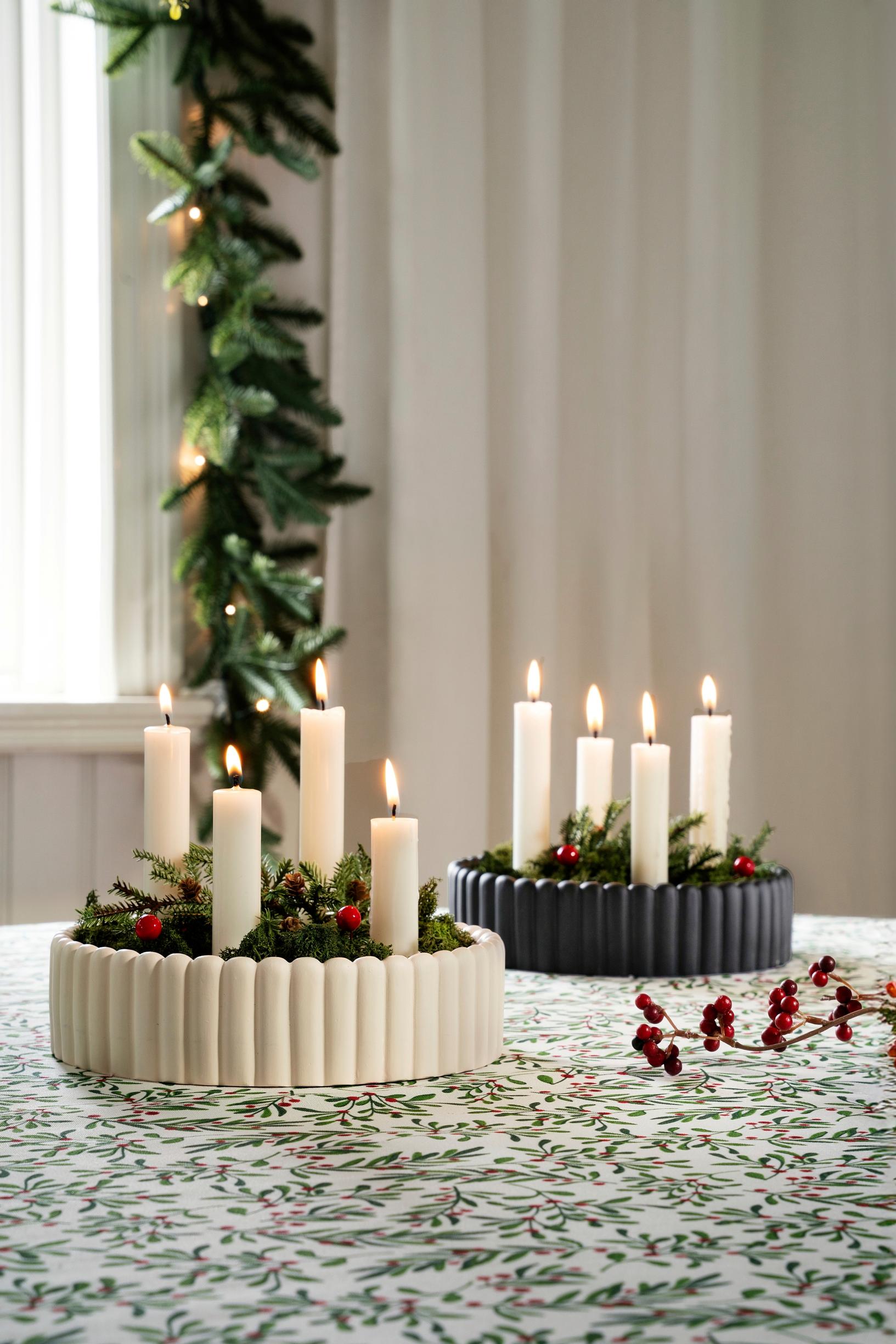 There’s no better moodsetter than the glow of real flame. Candlelight adds a magical touch to any decor, not just at Christmas. However, it’s wise to opt for LED candles in your displays for fire safety reasons. The products in the photo are from Rusta.