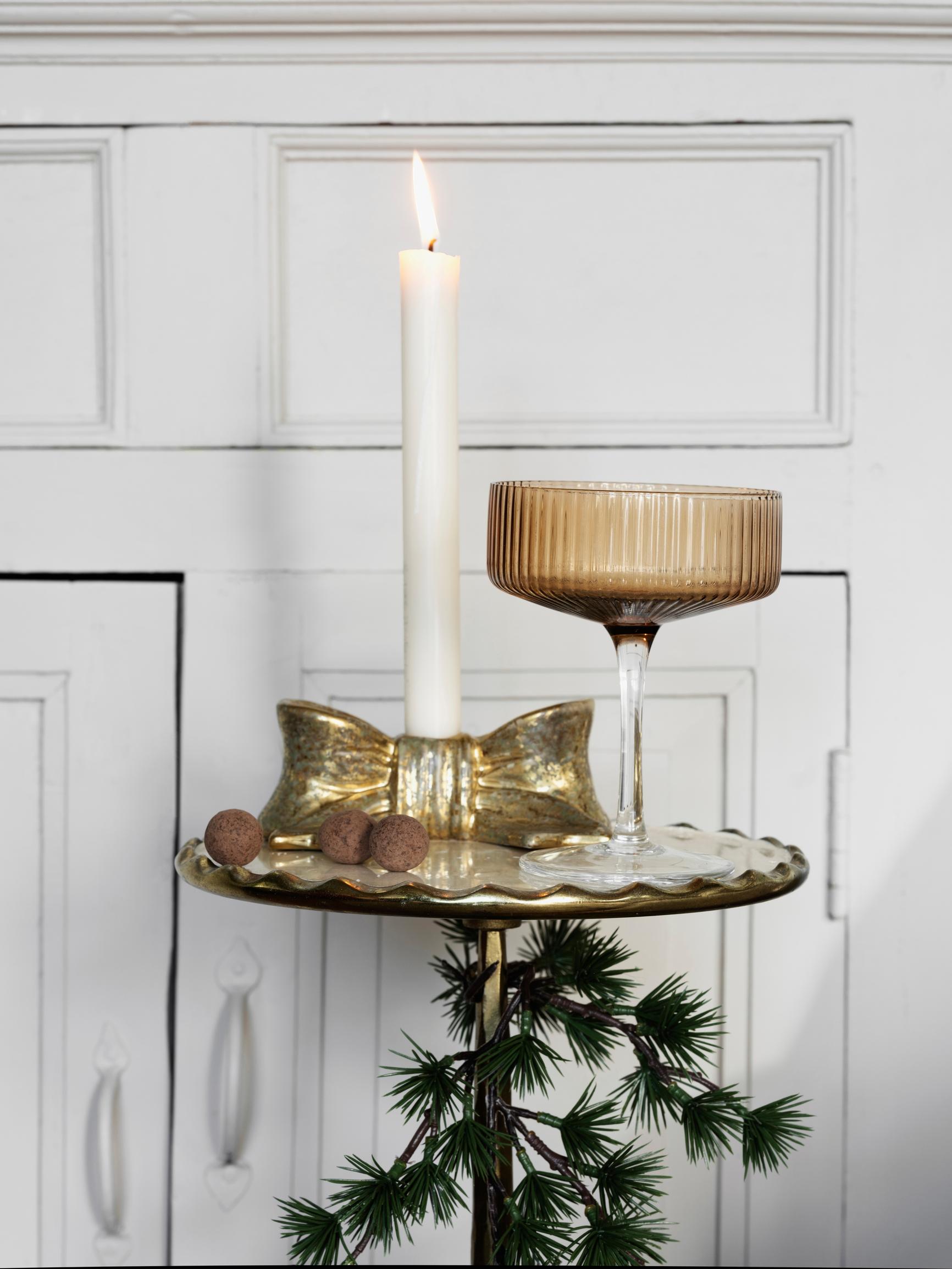 Decorate the leg of a small side table with an evergreen garland or branches. Fasten them with zip ties or tape. You can’t escape trendy bows this Christmas! The adorable bow-shaped candleholder is available in Hemtex’s Christmas collection.
