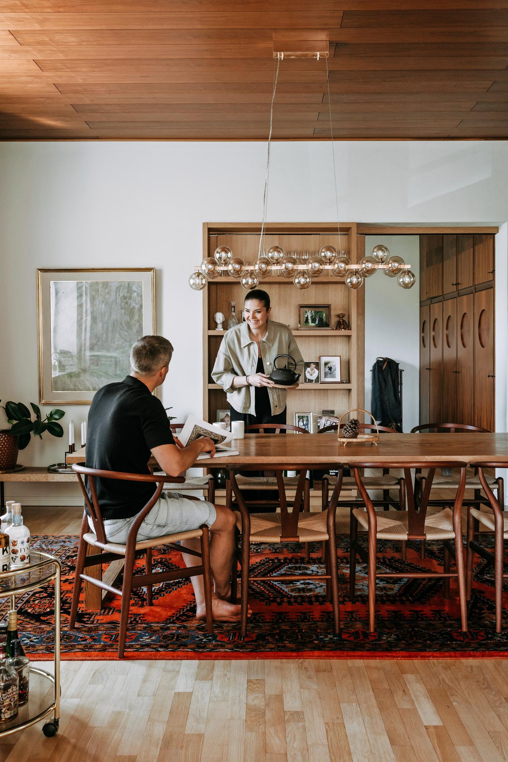 When it comes to decorating, Nana and Henri are effortlessly on the same page. Their previous home was a harmonious composition of black, white, and gray, but the color palette in their current home is far richer. The dominant wood elements in the ceiling and on a few large walls give them ample freedom to use color.