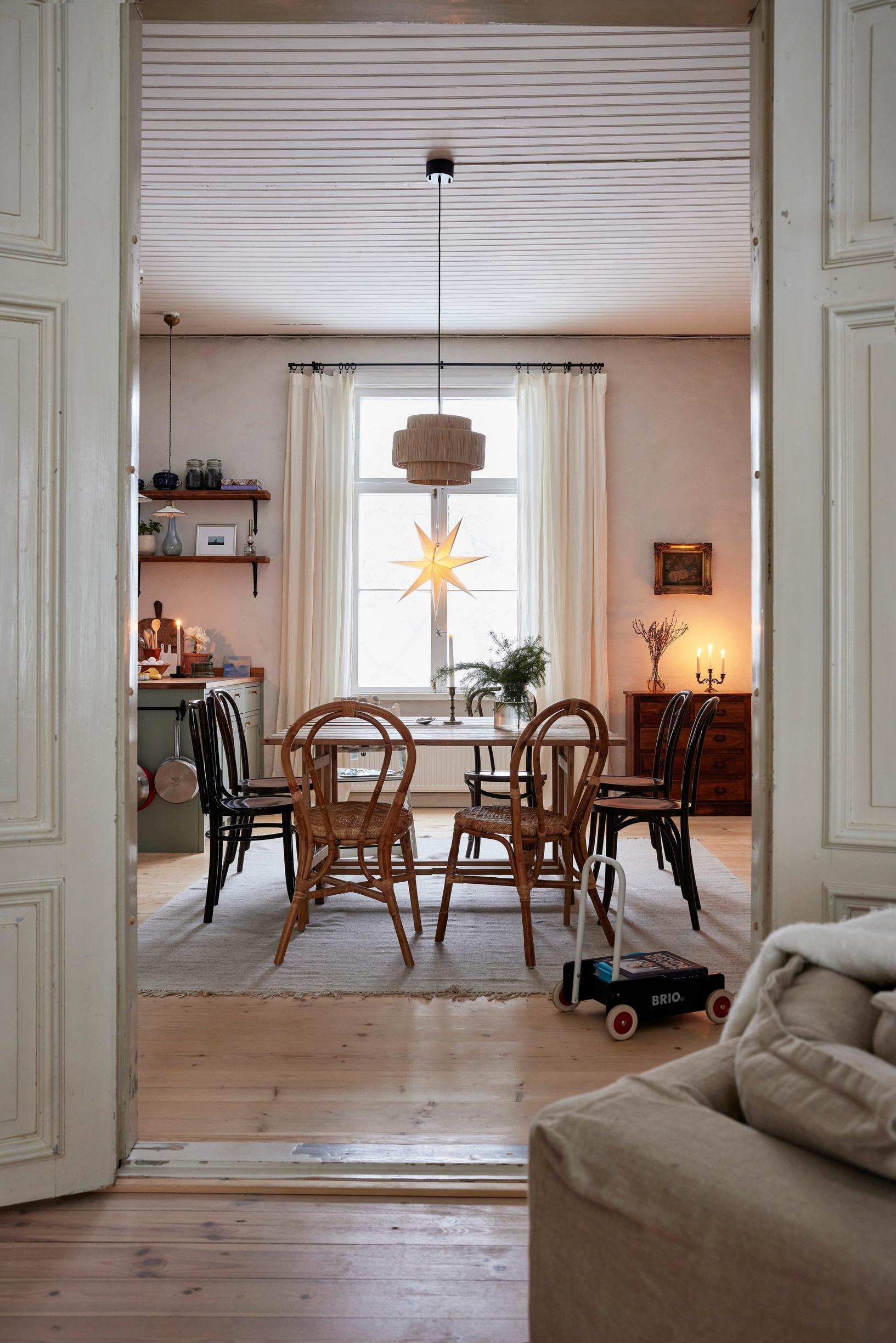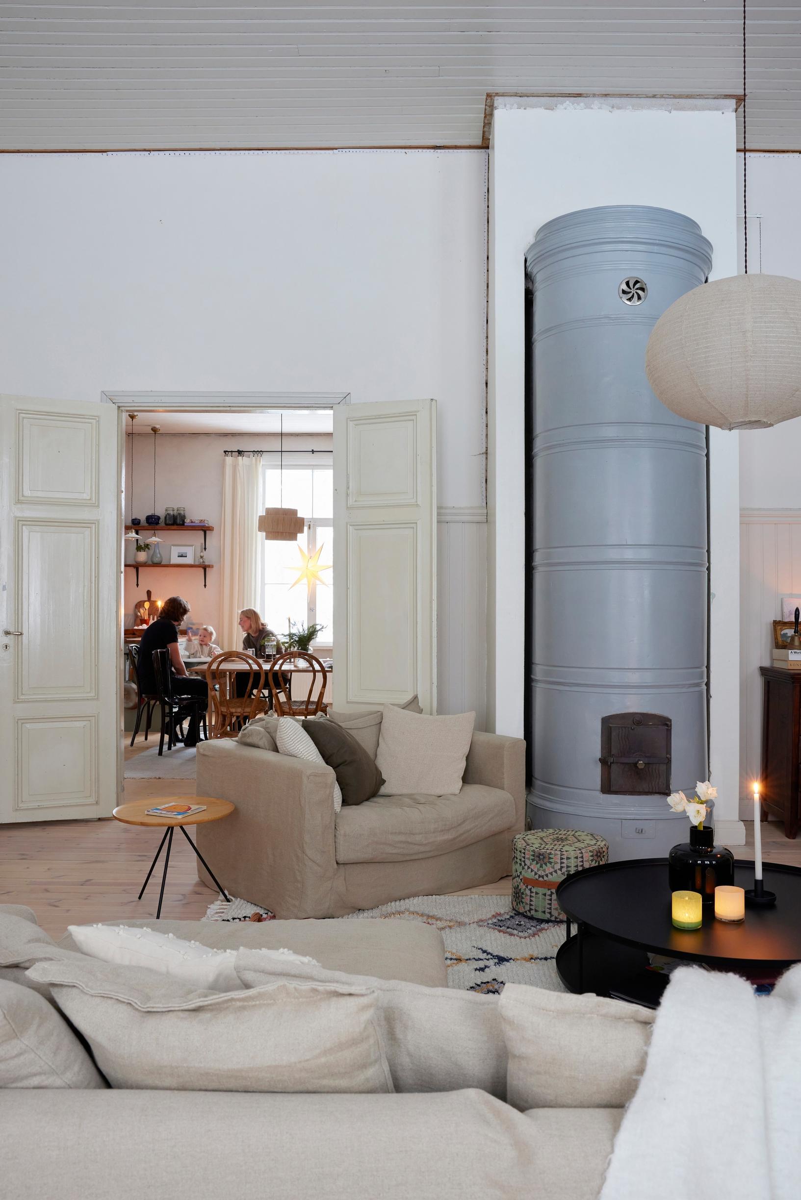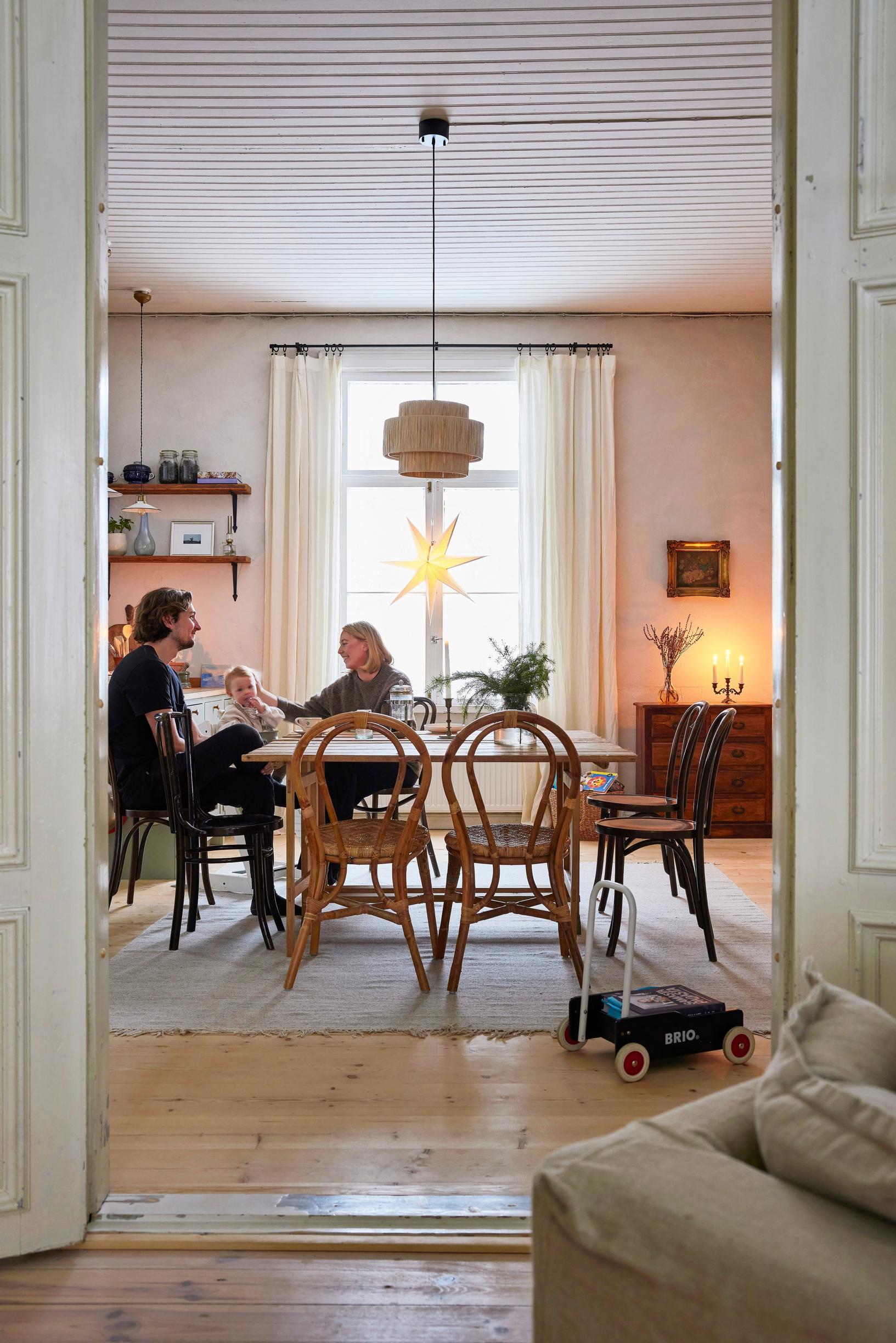 There are only two days until Christmas Eve, and neither renovation fatigue nor holiday stress is in sight. Gro is trying out her first steps and, as an energetic child, keeps her parents on their toes. While the snow flutters against the windows, it’s peaceful and cozy inside. The wood-burning tile stoves provide comforting warmth, and star-shaped lights in the windows bring a festive atmosphere indoors.