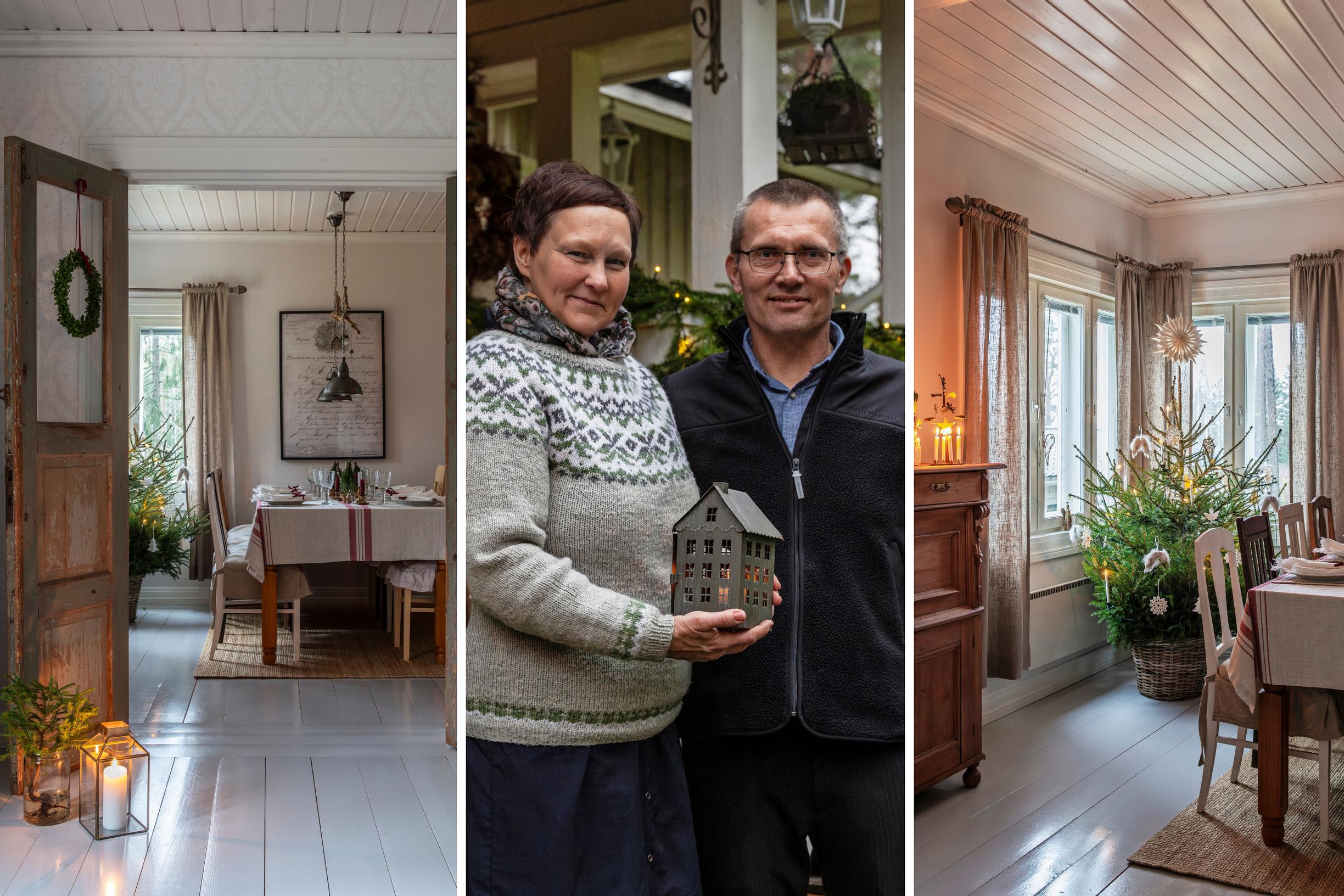 Annika and Kalevi’s home in the peaceful Kemiönsaari archipelago is steeped in the anticipation of Christmas. You can feel it even before you catch a glimpse of the light brown wooden house. Burning torches guide visitors through the moss-covered woods all the way to the front door.