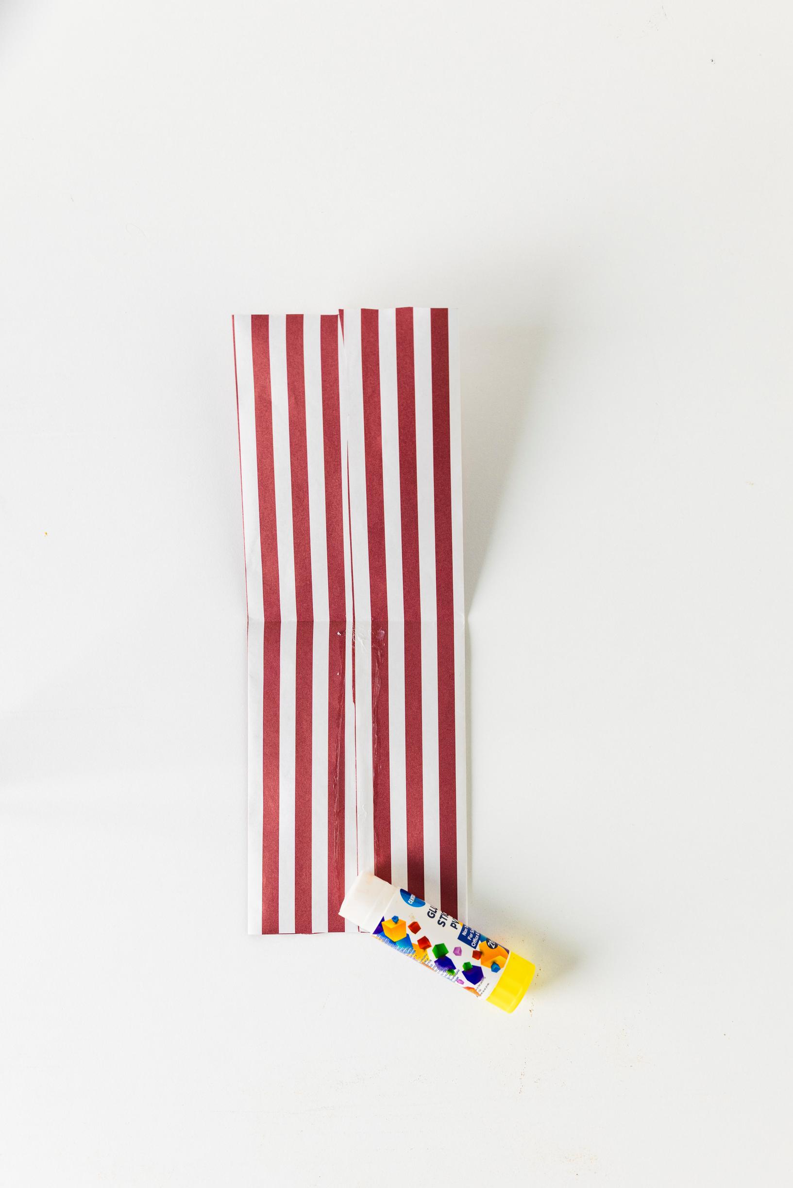 3. Next, fold the long paper piece in half and run a line of glue down the middle. Press the halves together.