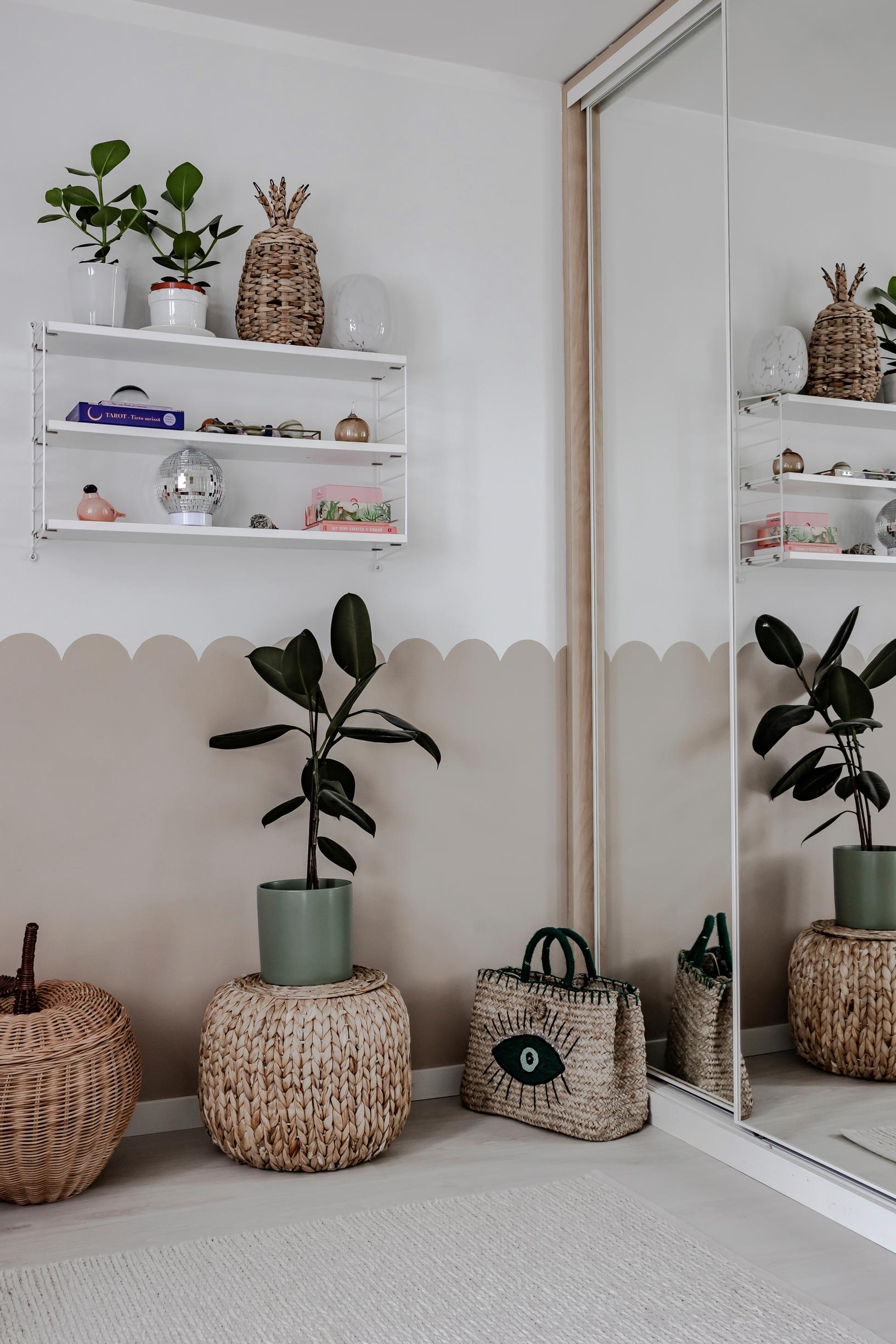 A paint project doesn’t have to mean an accent wall! A playful scalloped edge is easy to add with tape or a simple stencil.