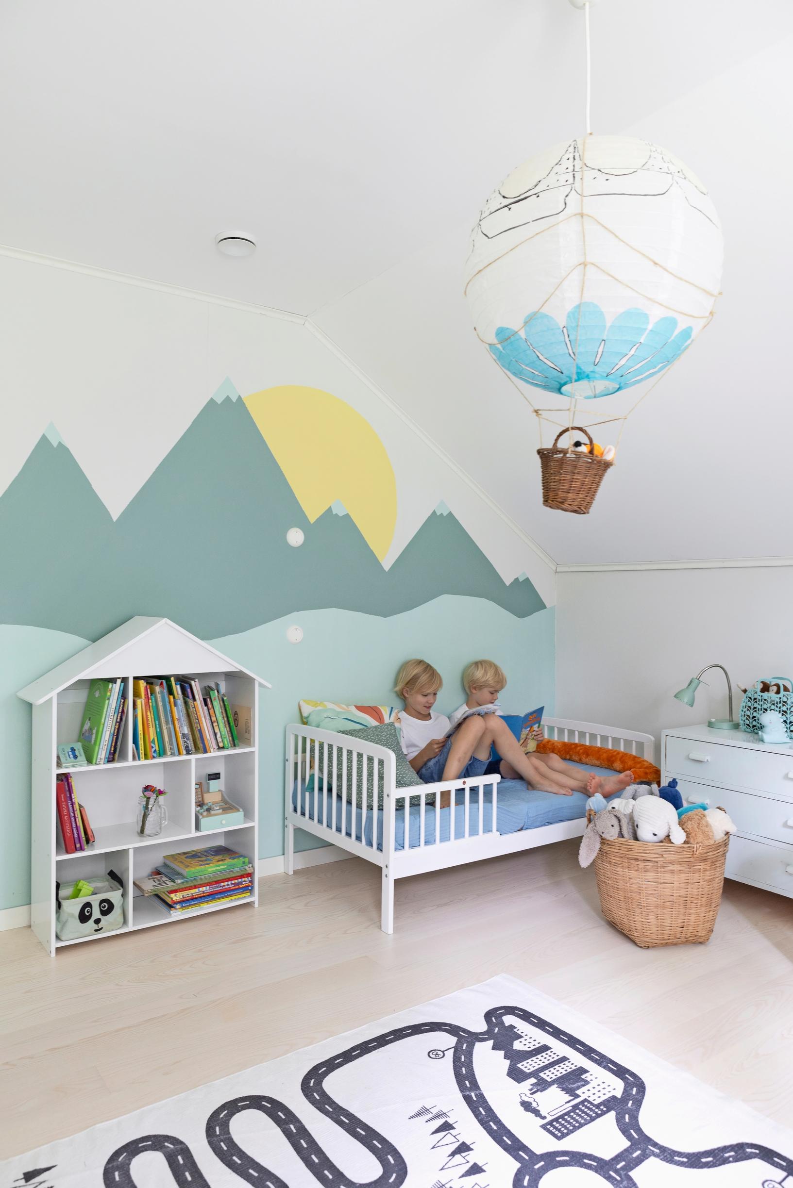 If you can’t find wallpaper imaginative enough, why not paint a wall-sized storybook scene in the kids’ room yourself? [in Finnish]