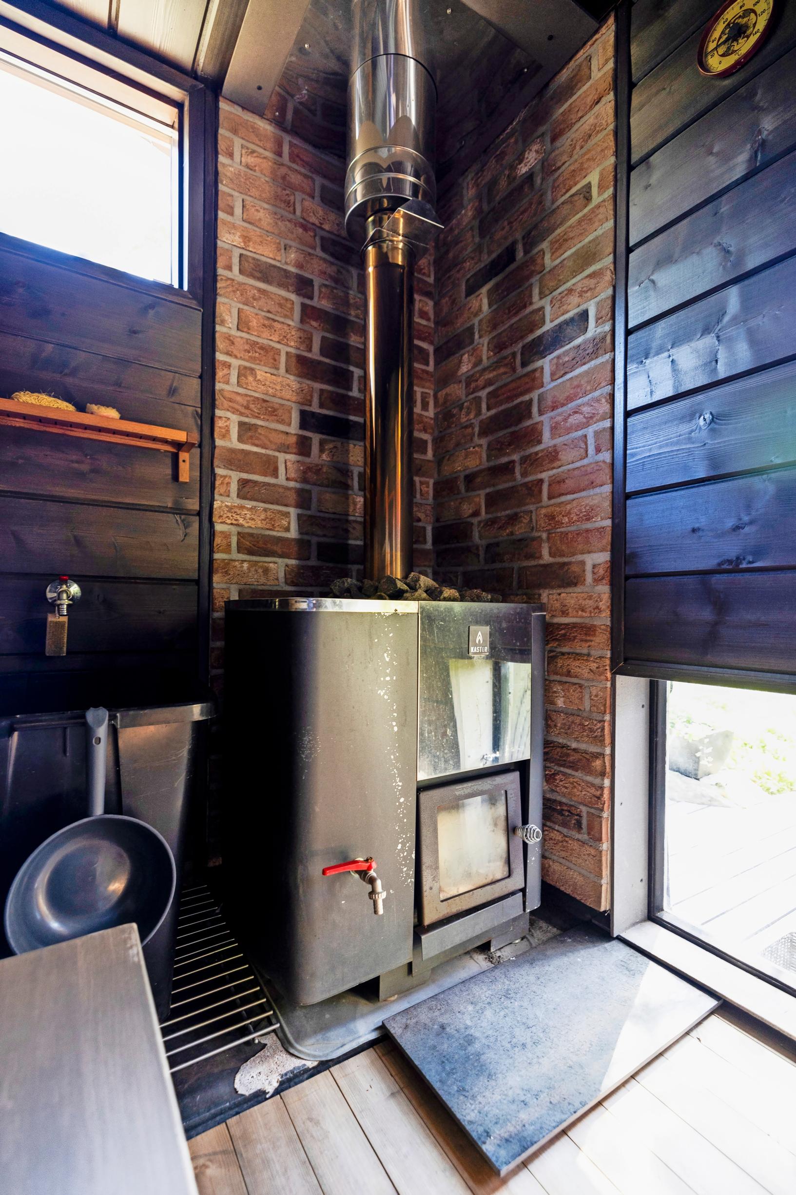 When Heidi and Arto renovated the sauna at their cottage in an old woodshed, they decided to add a window at floor level. It brings in light and also works as a handy hatch for firewood. At the same time, it introduced a fun new perspective—even the toes of someone cooling off can get some admiration!