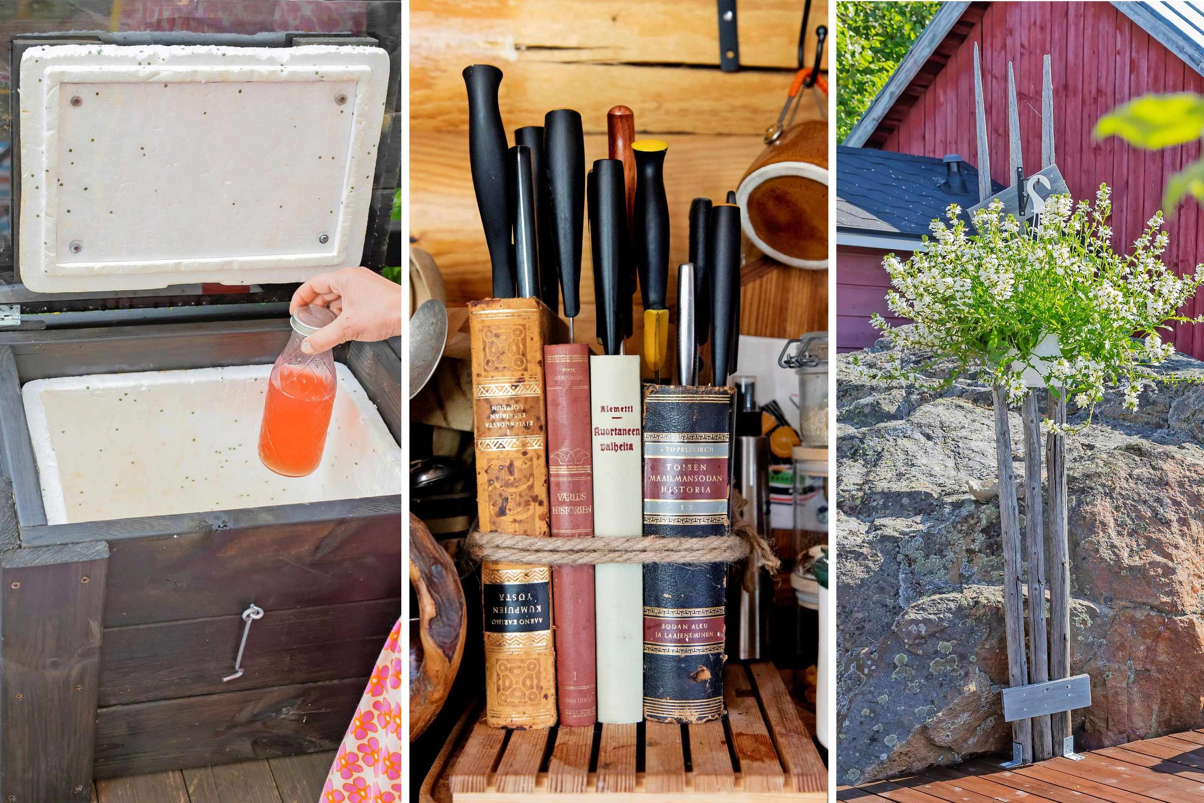 Cottage dwellers are masters at giving old items new life: a stack of books can become a knife holder, and leftover boards can turn into a cooler cover. Check out these five clever ideas!