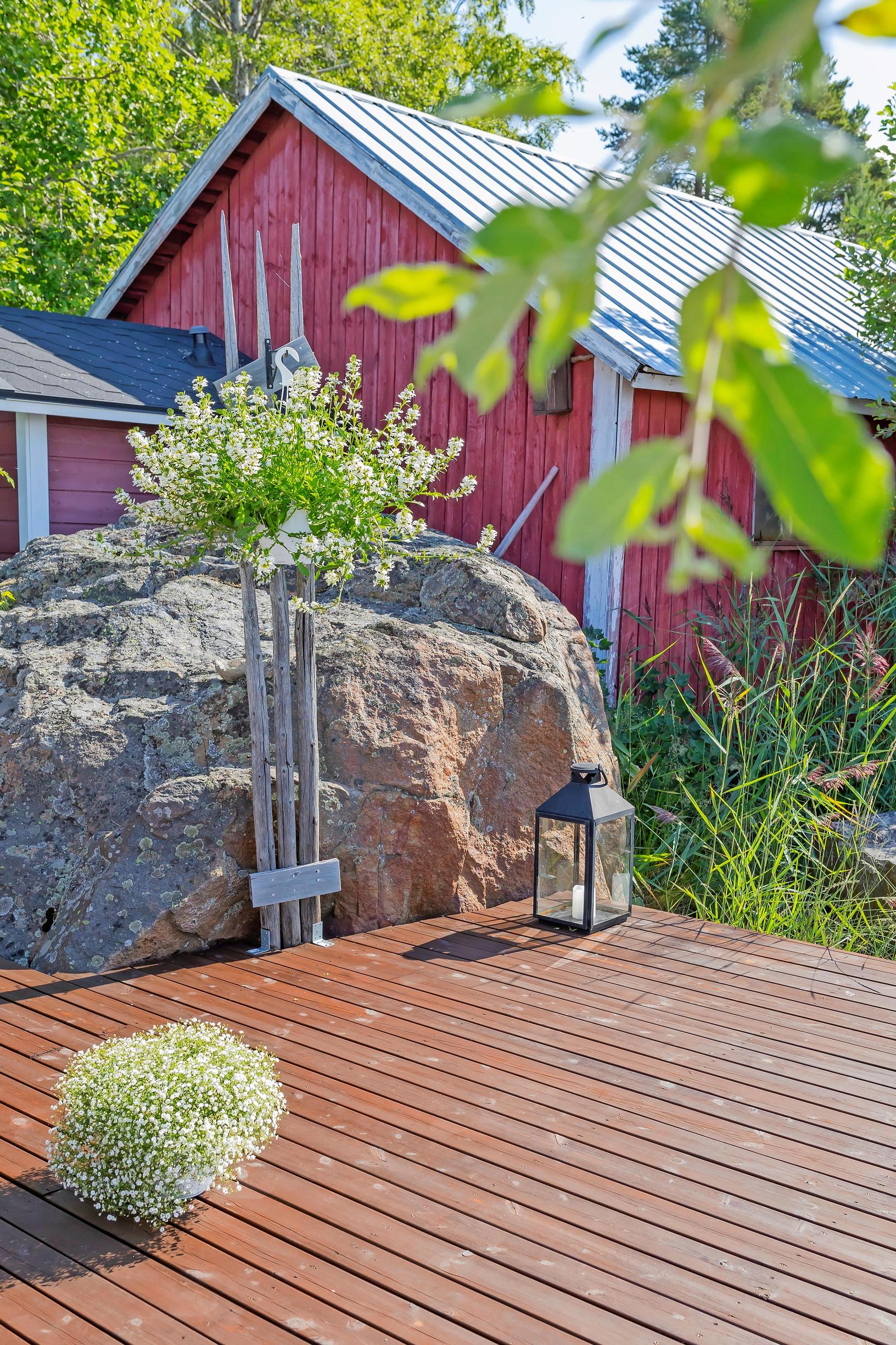 A Styrofoam cooler is a bit stark white, isn’t it? At Leni Joutsjoki’s cottage yard, it took on a more stylish appearance when it was fitted into a beautiful wooden box. The box is made from leftover decking boards and treated with black wood oil. The idea came from Leni’s cousin.