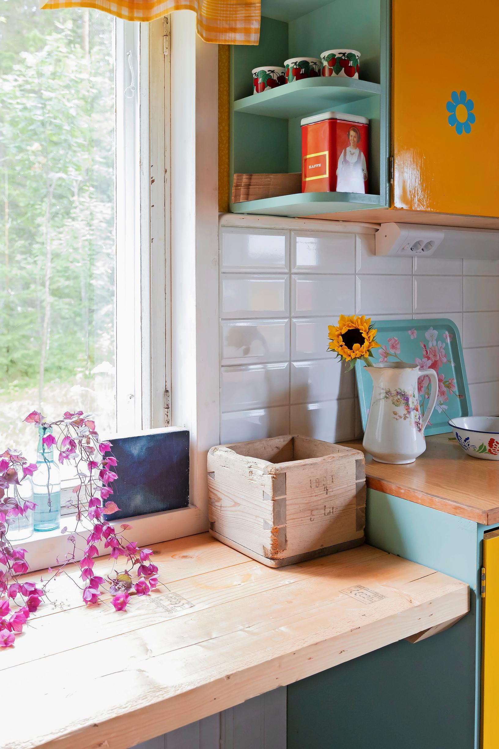 More than a century old yet still going strong, the two-liter measuring container found a new role in the kitchen once it was cleaned, transforming into a beautiful and practical storage box. This old wooden object also brings back memories of the past at the small farm where Anita and Timo Hannunen have their cottage.
