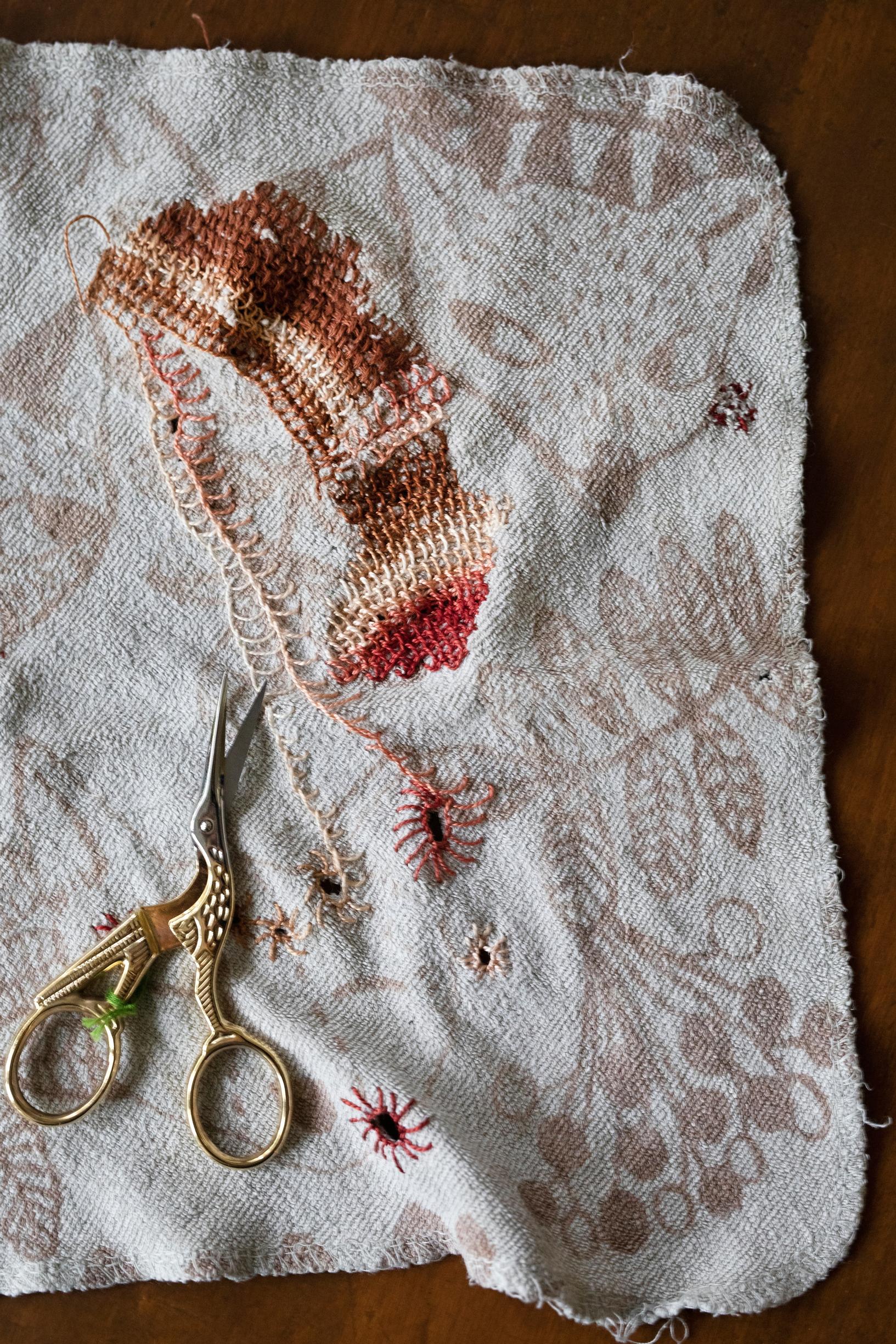 Cross-stitching is a good tool for processing angry thoughts. Working on a piece physically as the idea takes shape on the fabric helps me to process it and let go.