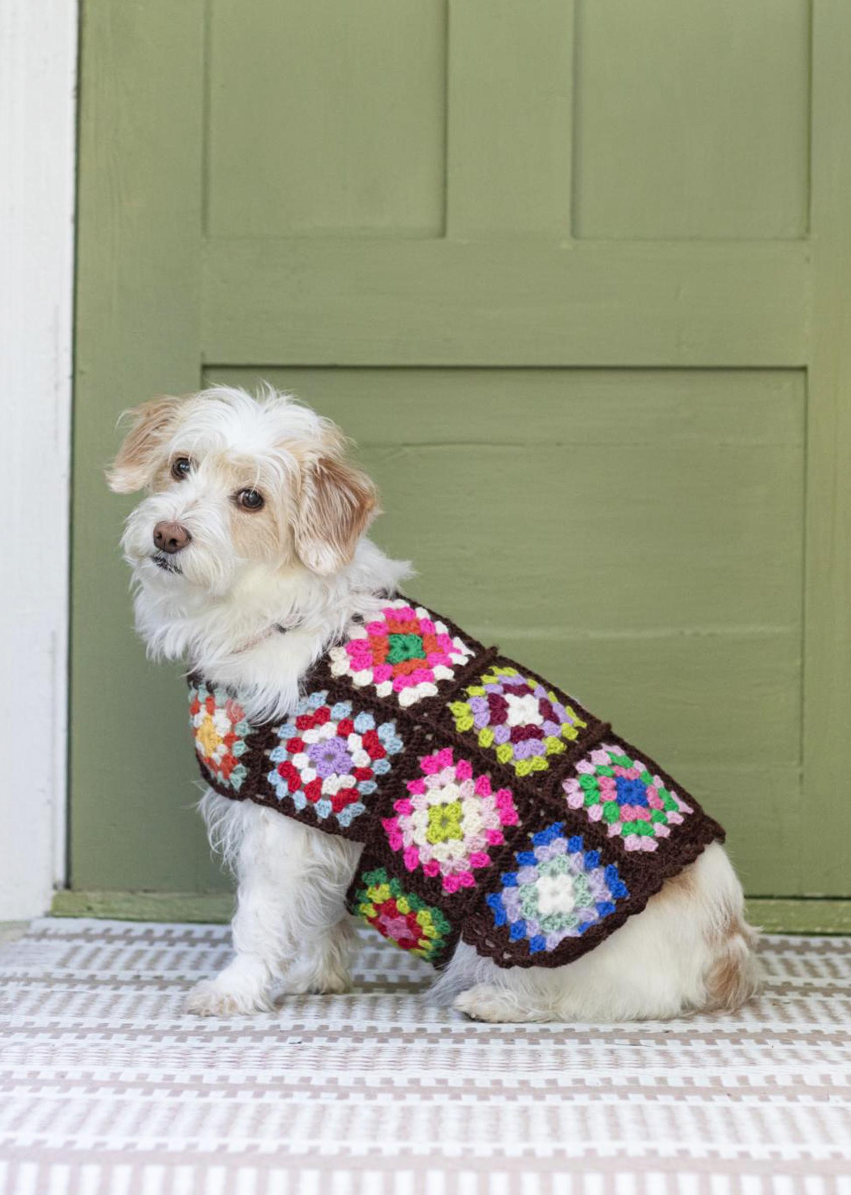 Keep your four-legged friend cozy this winter—crochet a dog sweater from granny squares