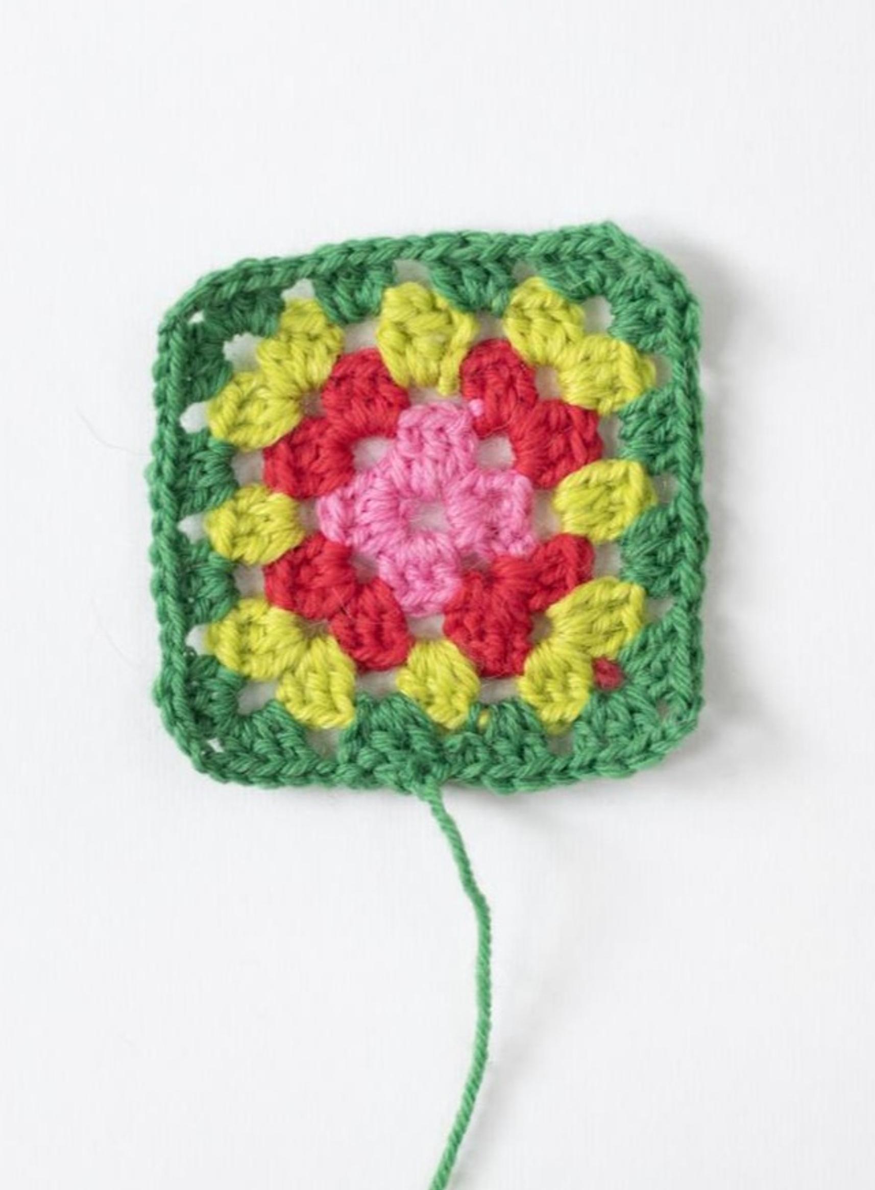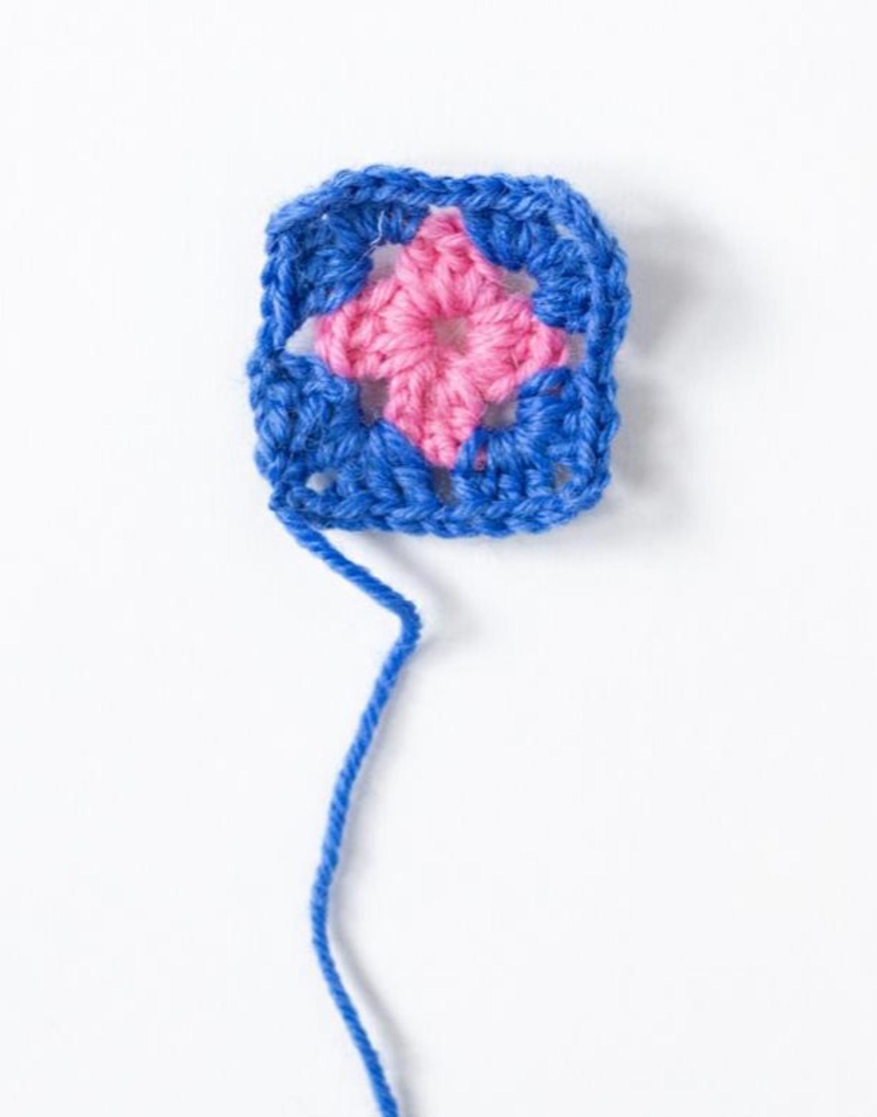 5. Crochet the remaining 15 granny squares in the same way. You can play with color as you like, or make all the squares identical.