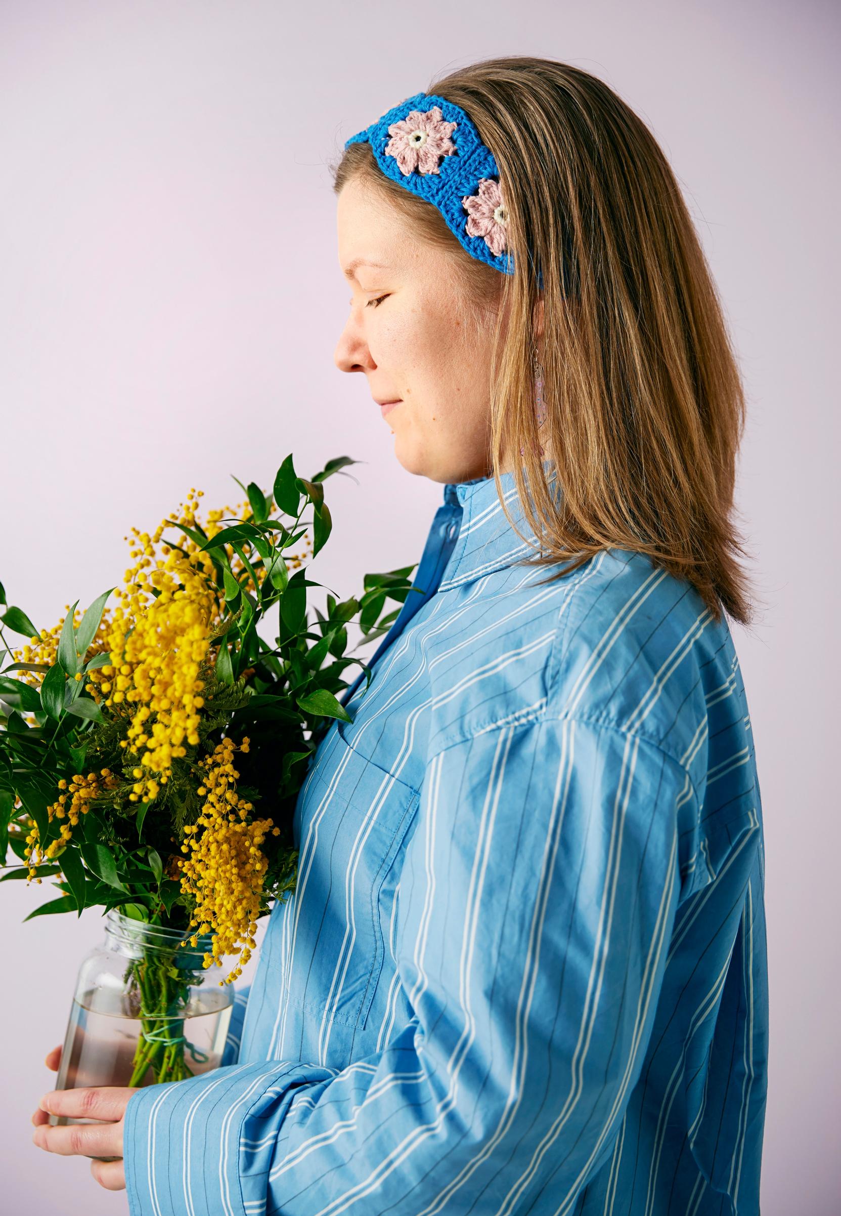Crocheted headband from flower squares—check out our quick and easy tutorial