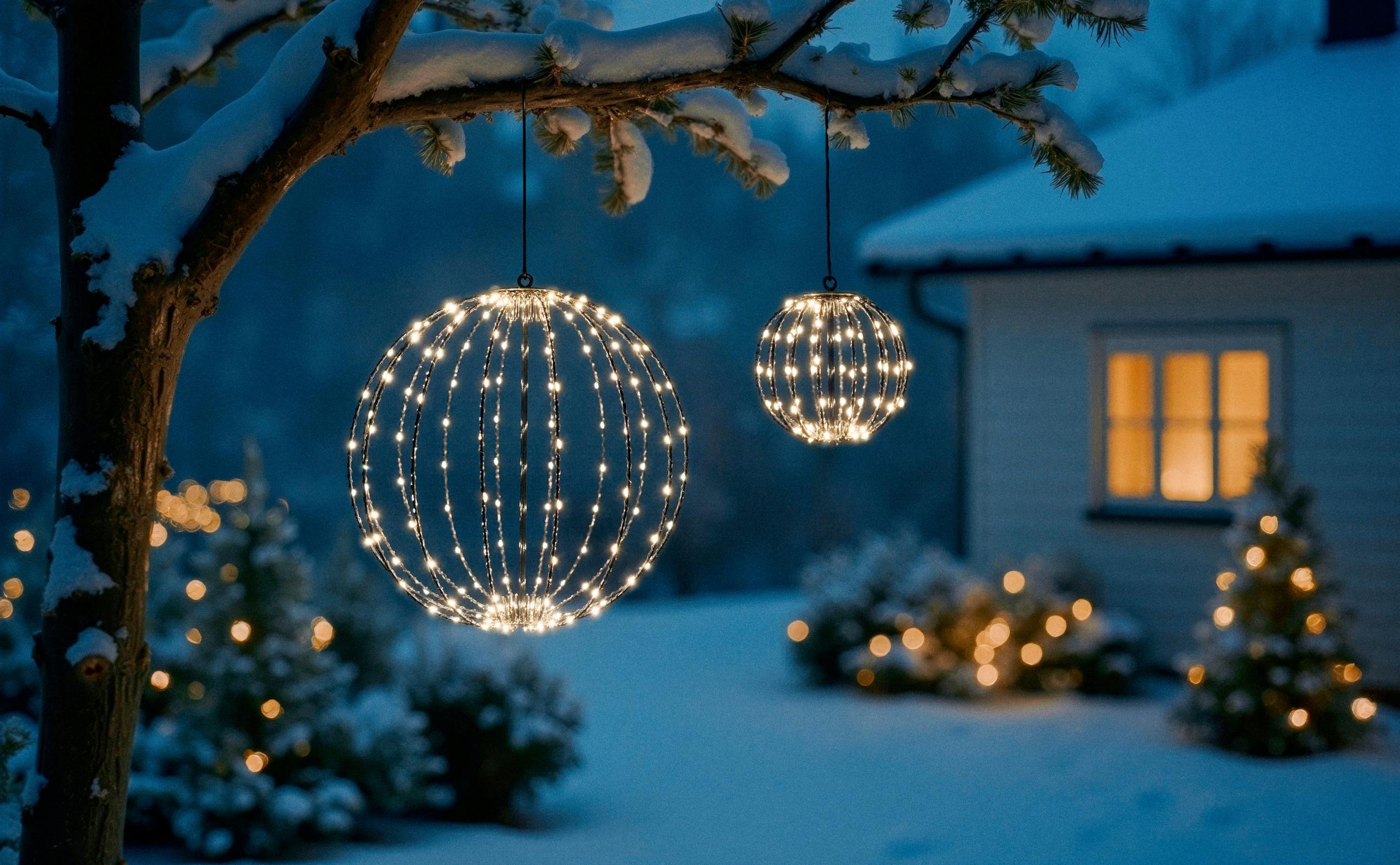 Glowing spheres hanging from trees look like something out of a fairy tale. Hang one—or several—LED decorative lights from a branch.