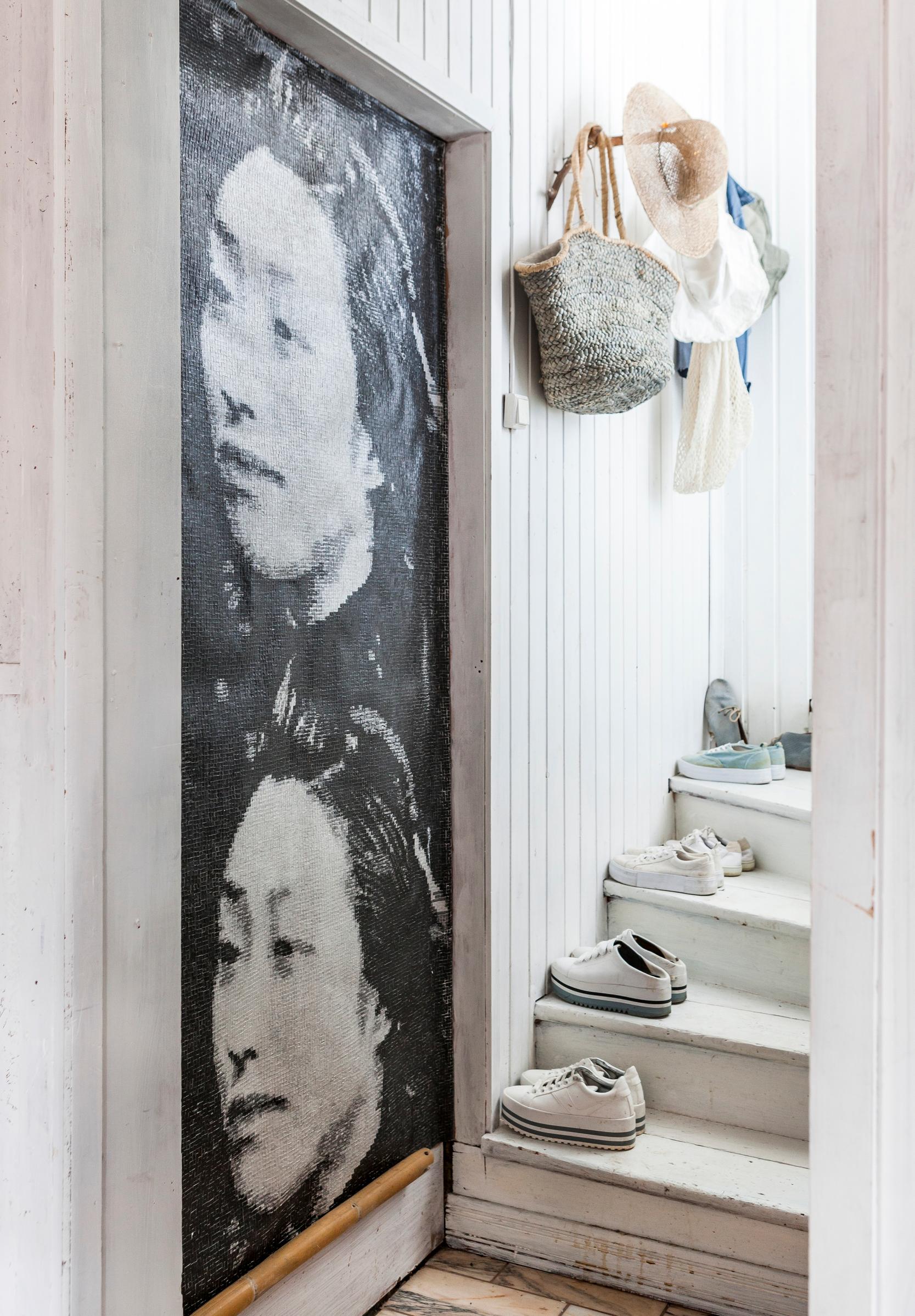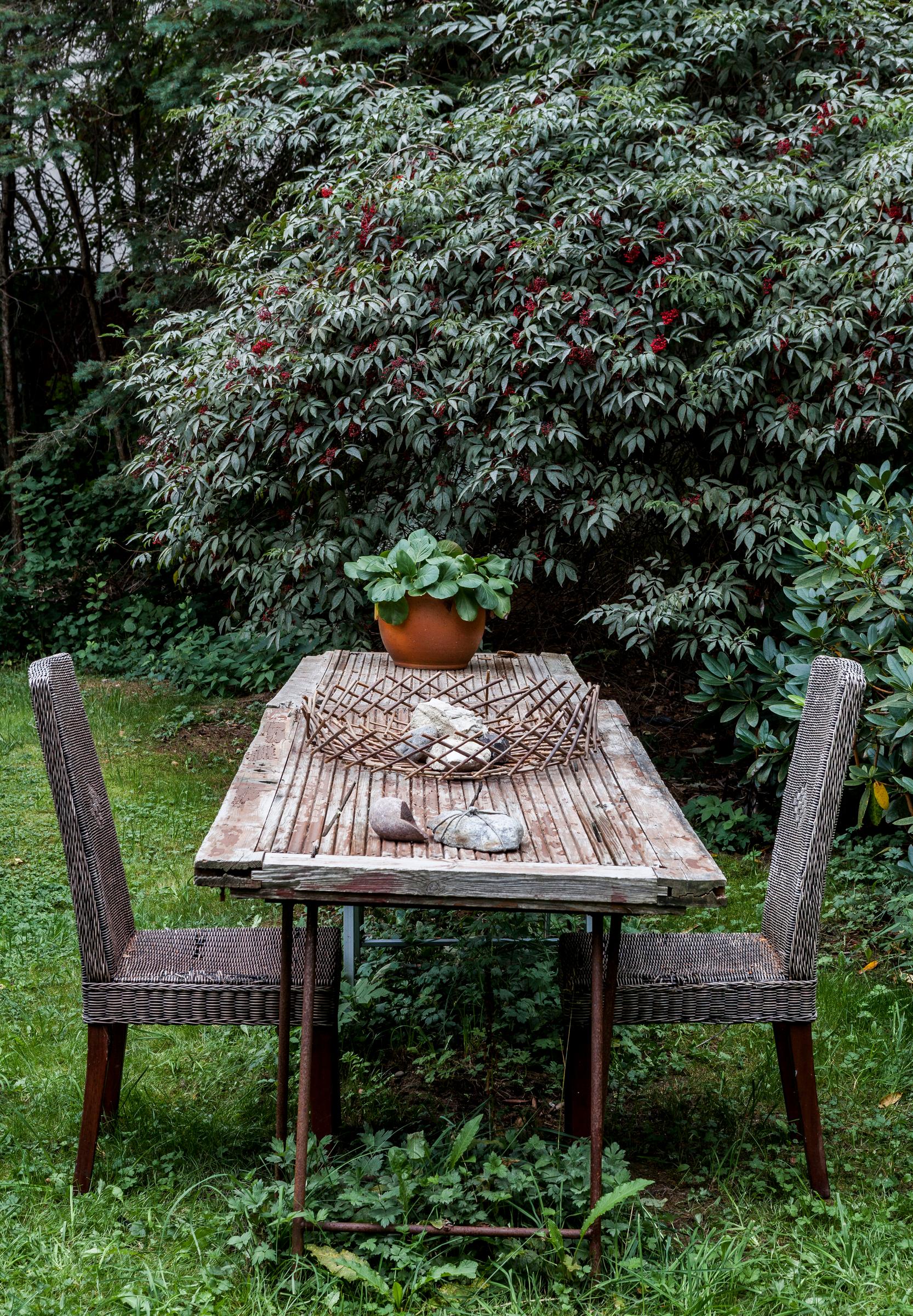 When I brought two beautifully crafted old exterior doors into my garden—each still with its mail slot—and slid sun umbrellas into those slots, the door became a four-meter-long table. Truly wabi-sabi. The same goes for the diagonal planks uncovered beneath layers of old wallpaper, which I immediately fell for.