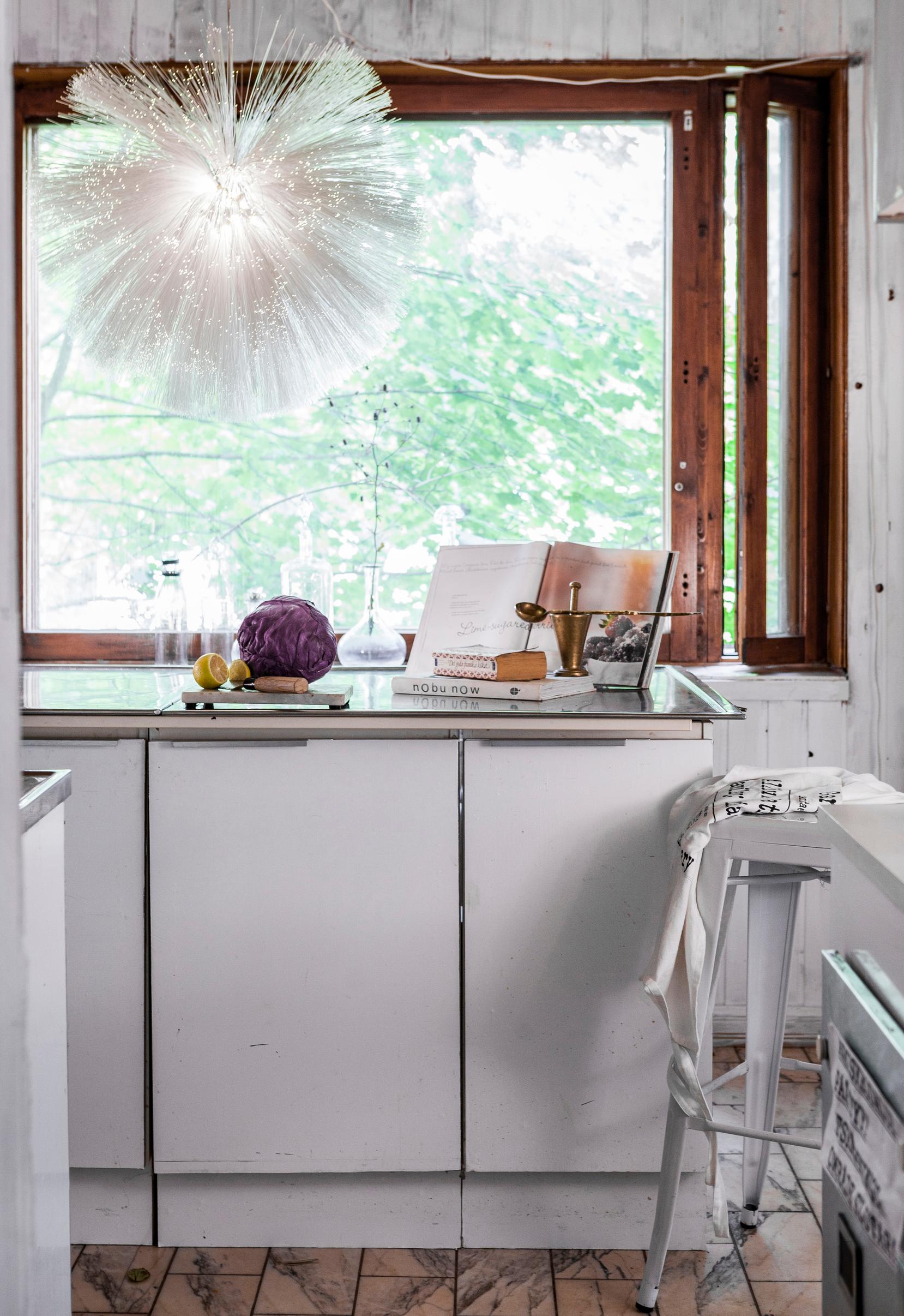 The kitchen’s veneer cabinets were resurfaced. Maybe gray would have been ideal, but I chose white since the kitchen faces north and gets little sunlight during summer evenings.