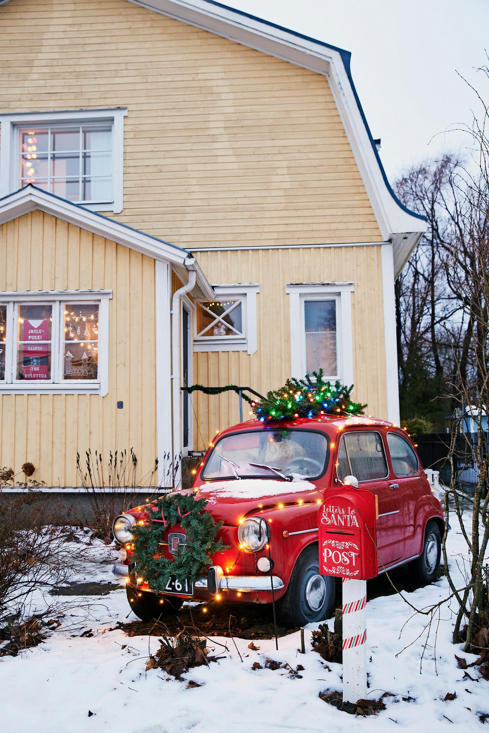 In November, Elisa begins decorating the summer car for Christmas. Along with the tree, lights, wreath, and packages, you’ll find a mailbox for Santa next to the vehicle.