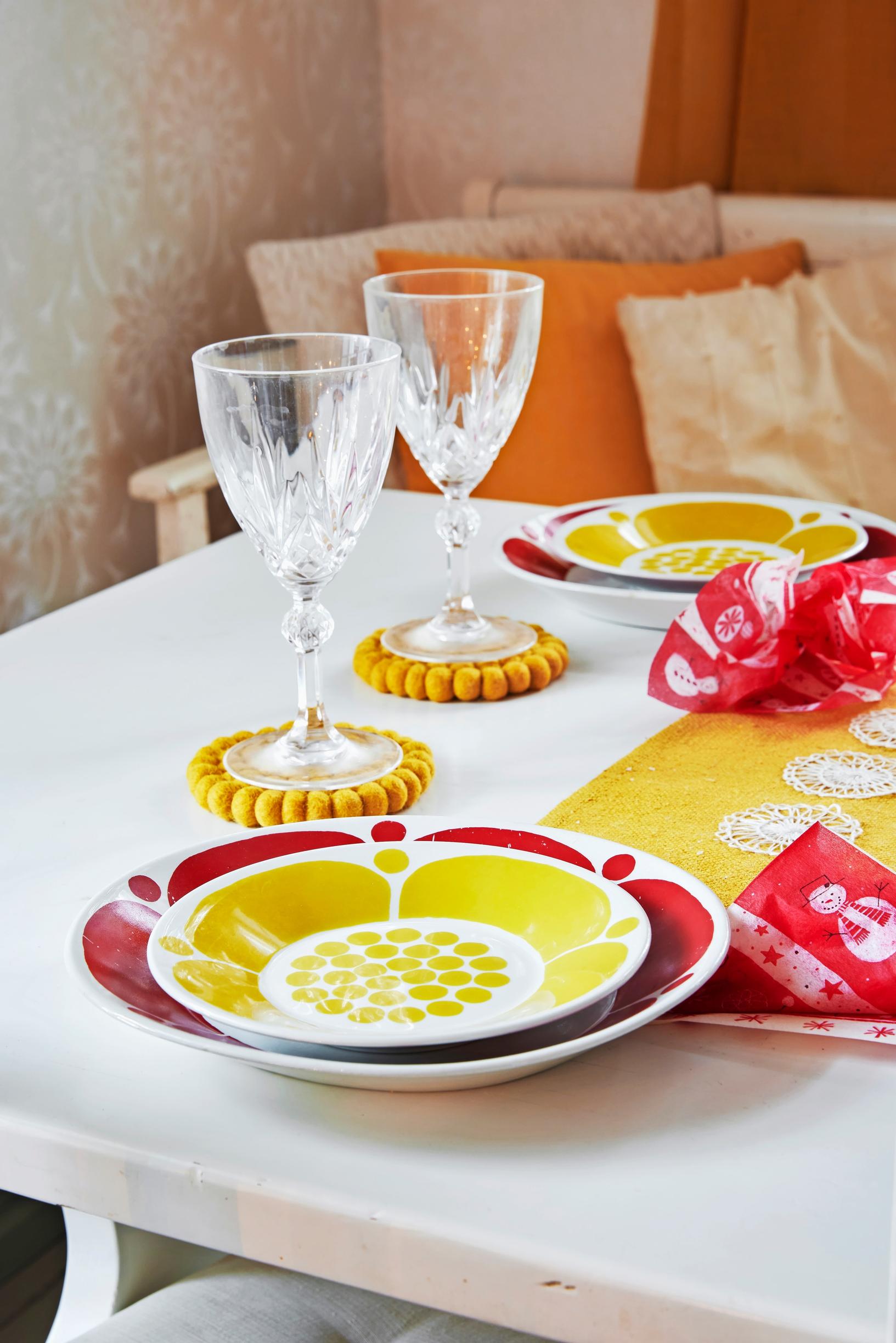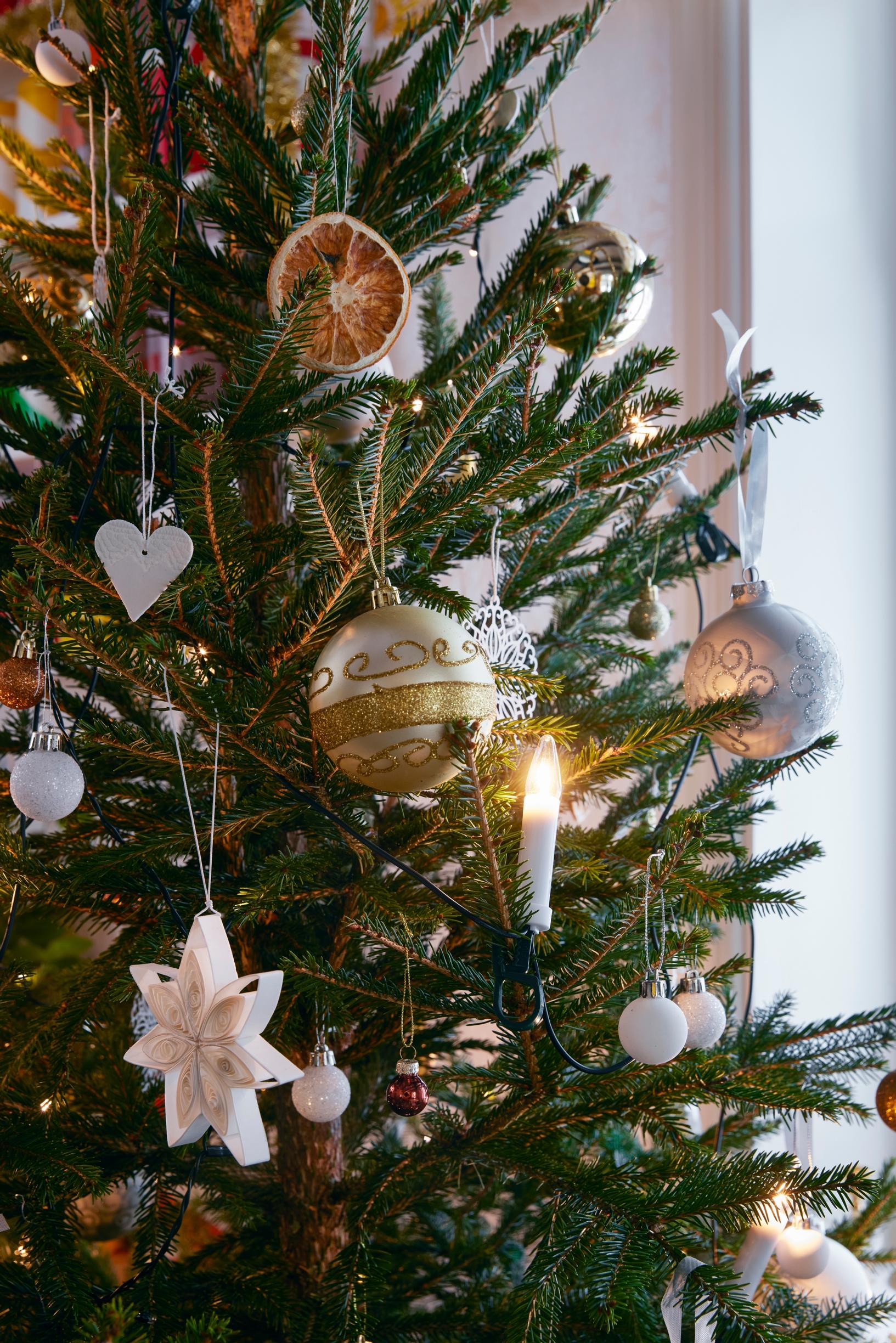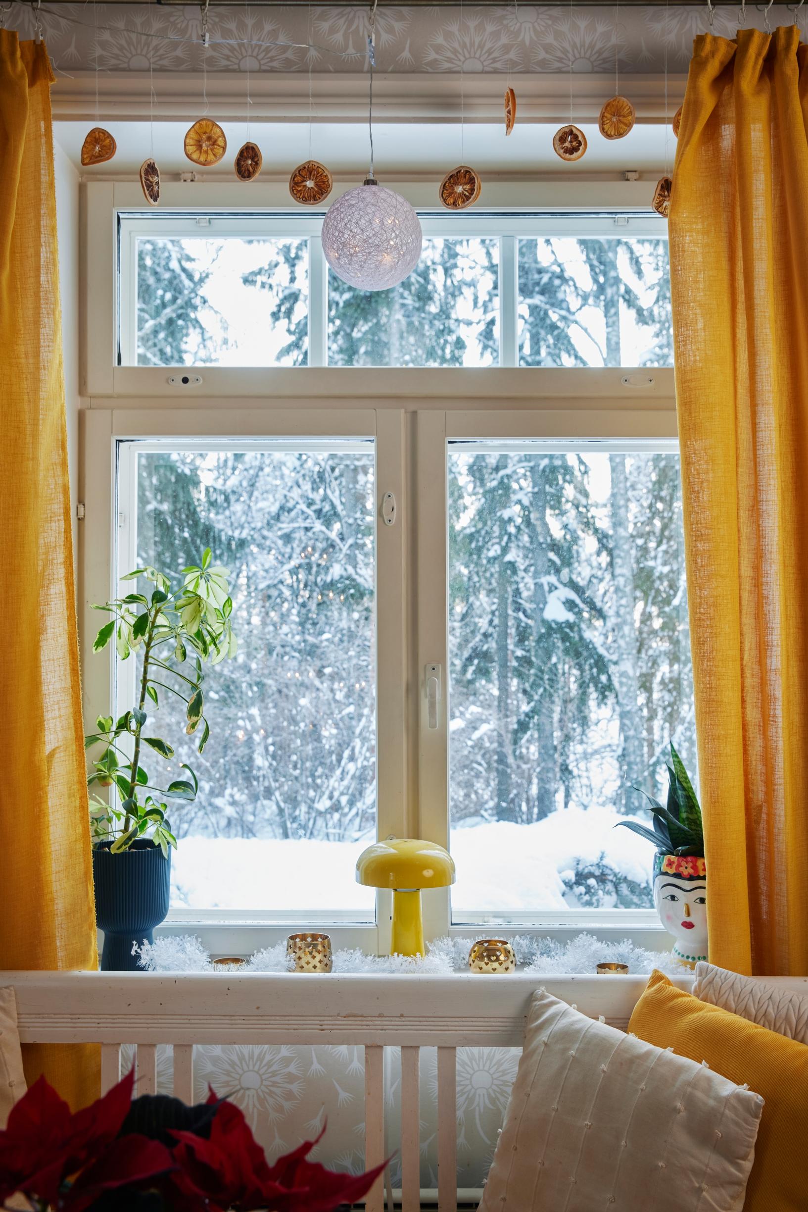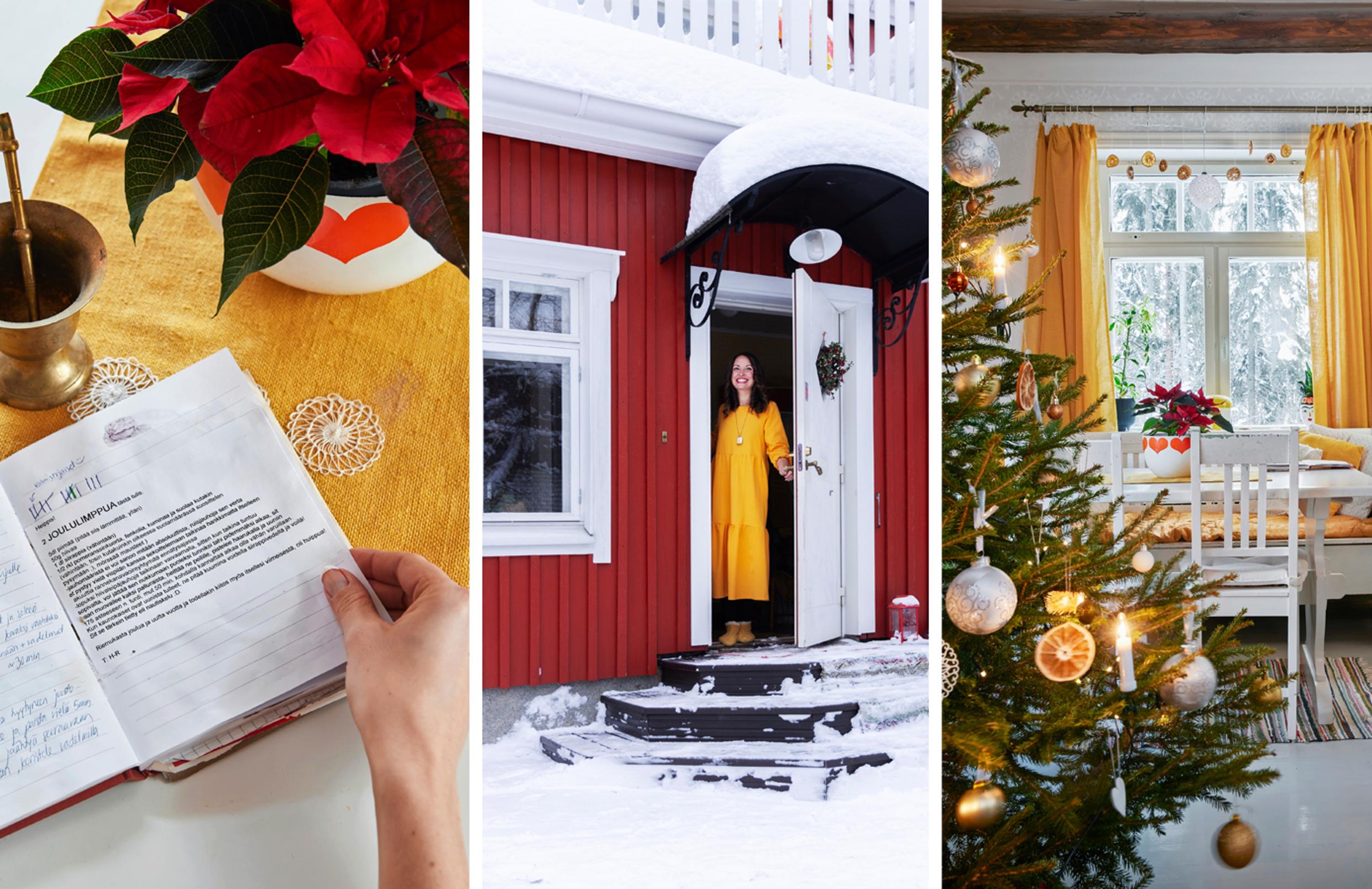 But before it’s time for the Christmas mattresses, plenty happens in this century-old log house. In mid-November, decorative lights go up outside, and stars appear in the windows. Christmas flowers are planted in cheerful retro containers, and the living area is beautifully decorated. Even though the home’s main color is a vibrant yellow, the flowers boast a more traditional Christmas color, red. Around the third Sunday of Advent, the family brings in a real spruce tree adorned with subtly fragrant dried orange slices.