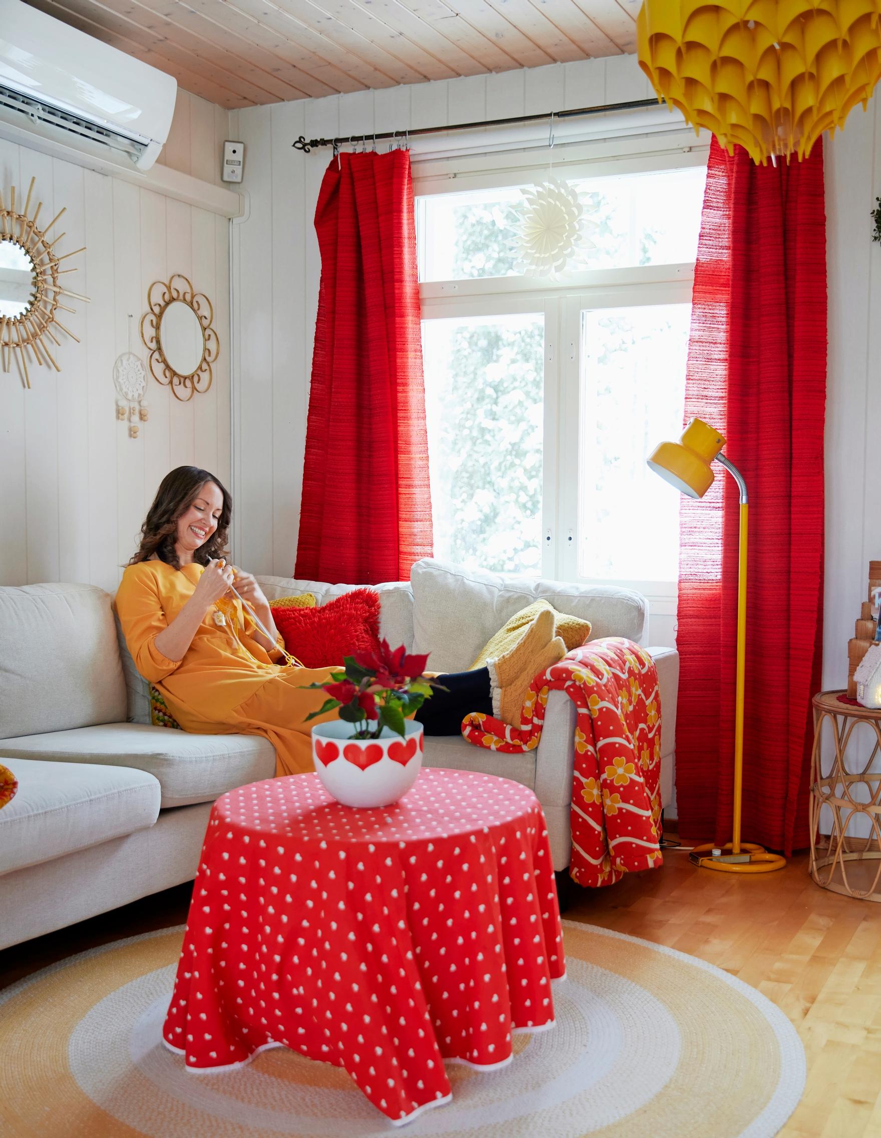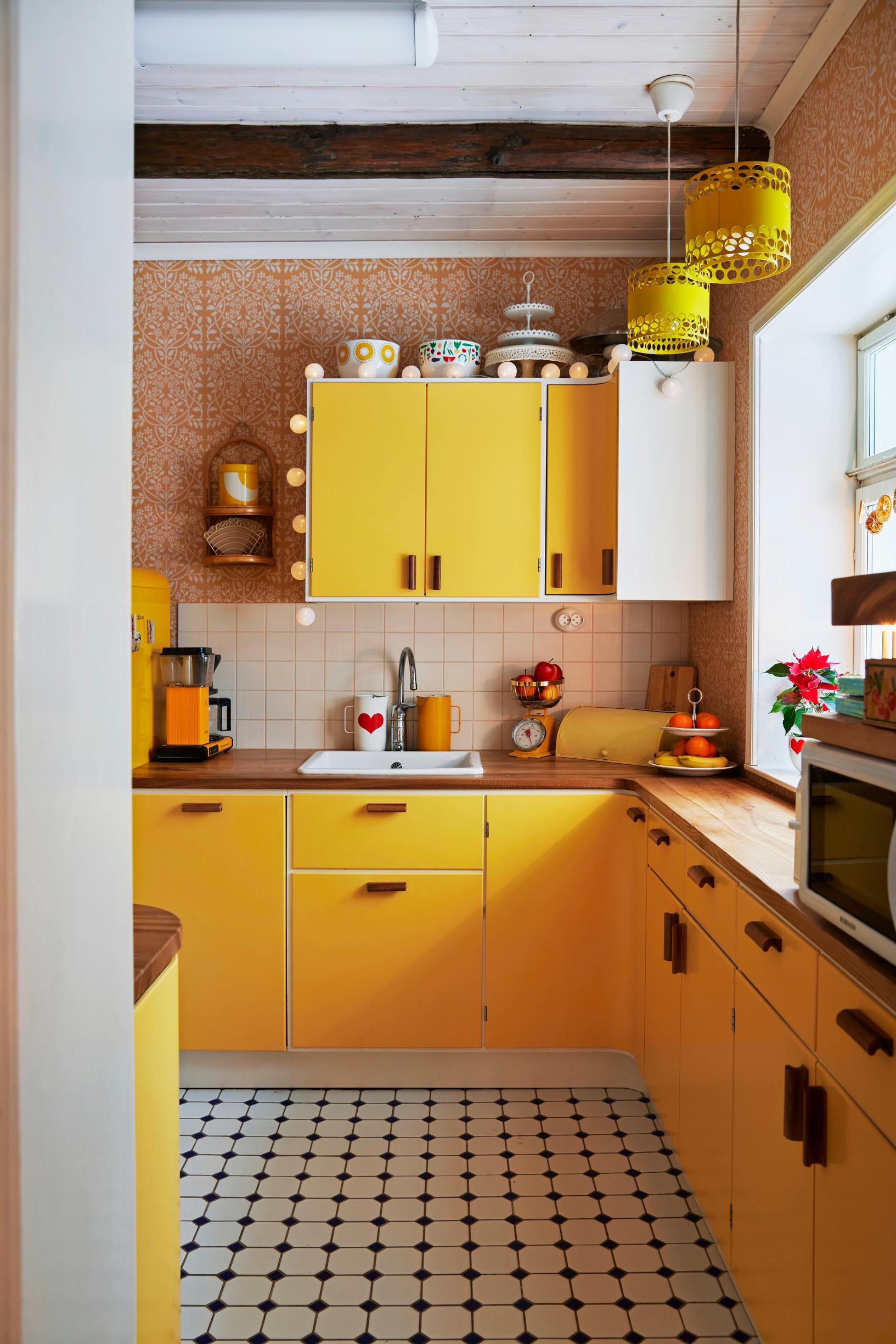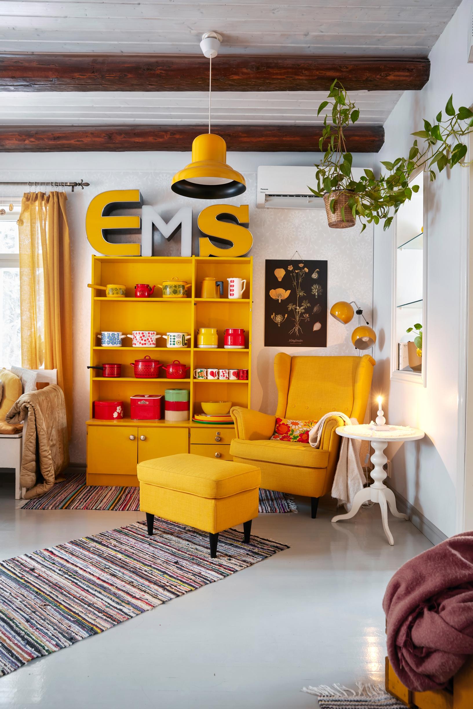 Red on the outside but enchantingly yellow on the inside, the house is familiar to many a Finn from the Elluyellow social media account, where Elisa shares interior design inspiration, color therapy, and her fabulous yellow thrift finds. She and her family moved in spring 2017 from Kirkkonummi to this red lakeside house on Lake Pyhäjärvi.