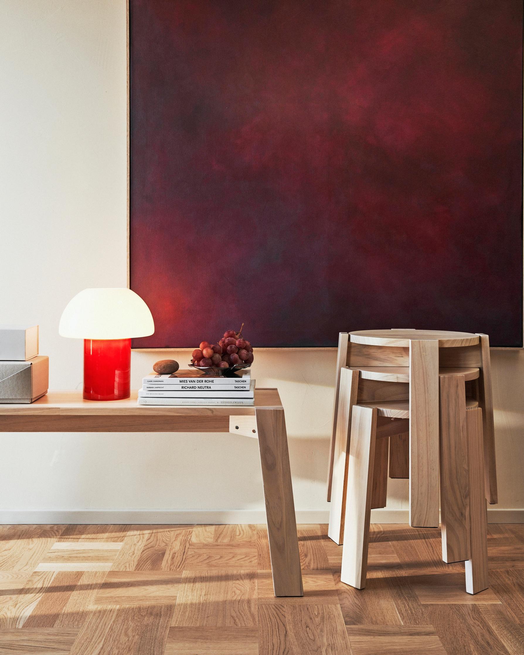 Large, unpainted pine furniture was popular in the 1970s, and it’s making a comeback in 2025! Instead of massive pieces, today’s designs are space-saving, stackable, and versatile. The Silas stool from Granit can serve as extra seating, a kitchen helper, a nightstand, or a side table.