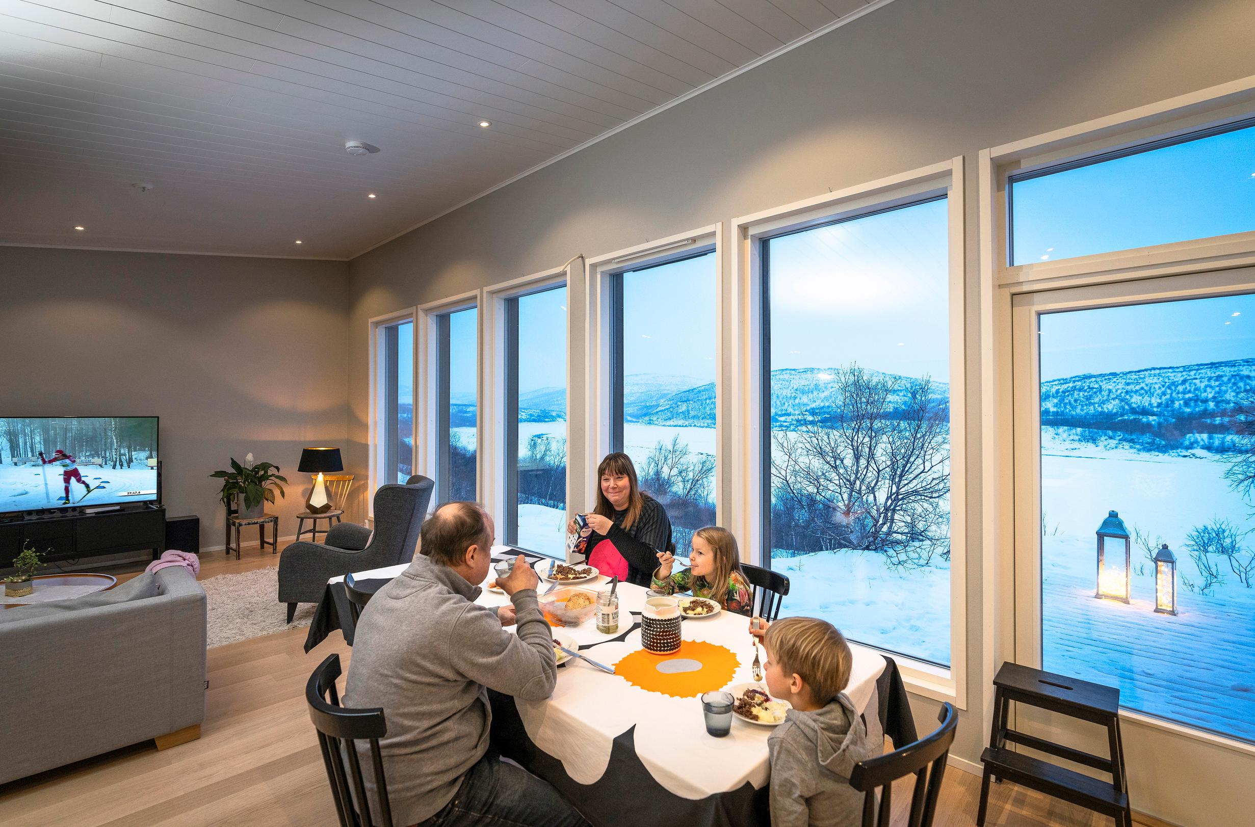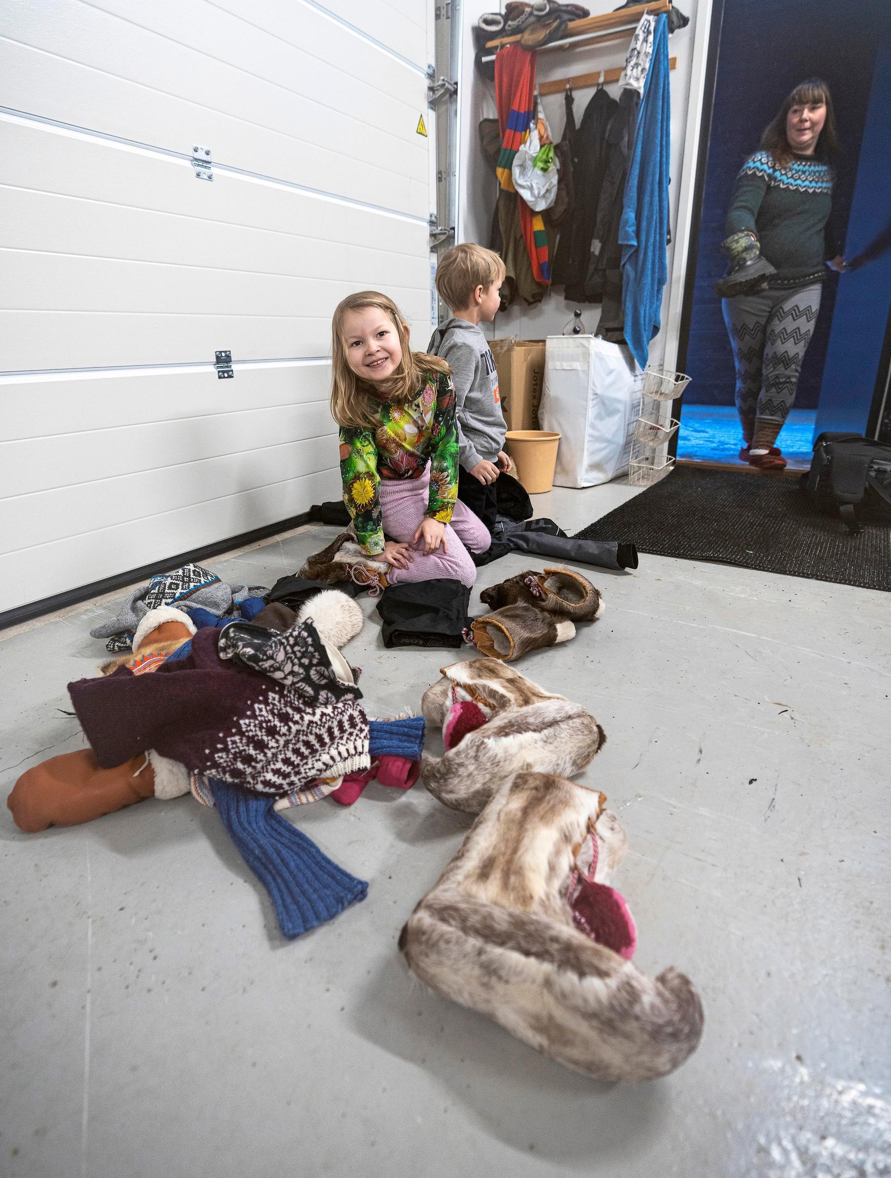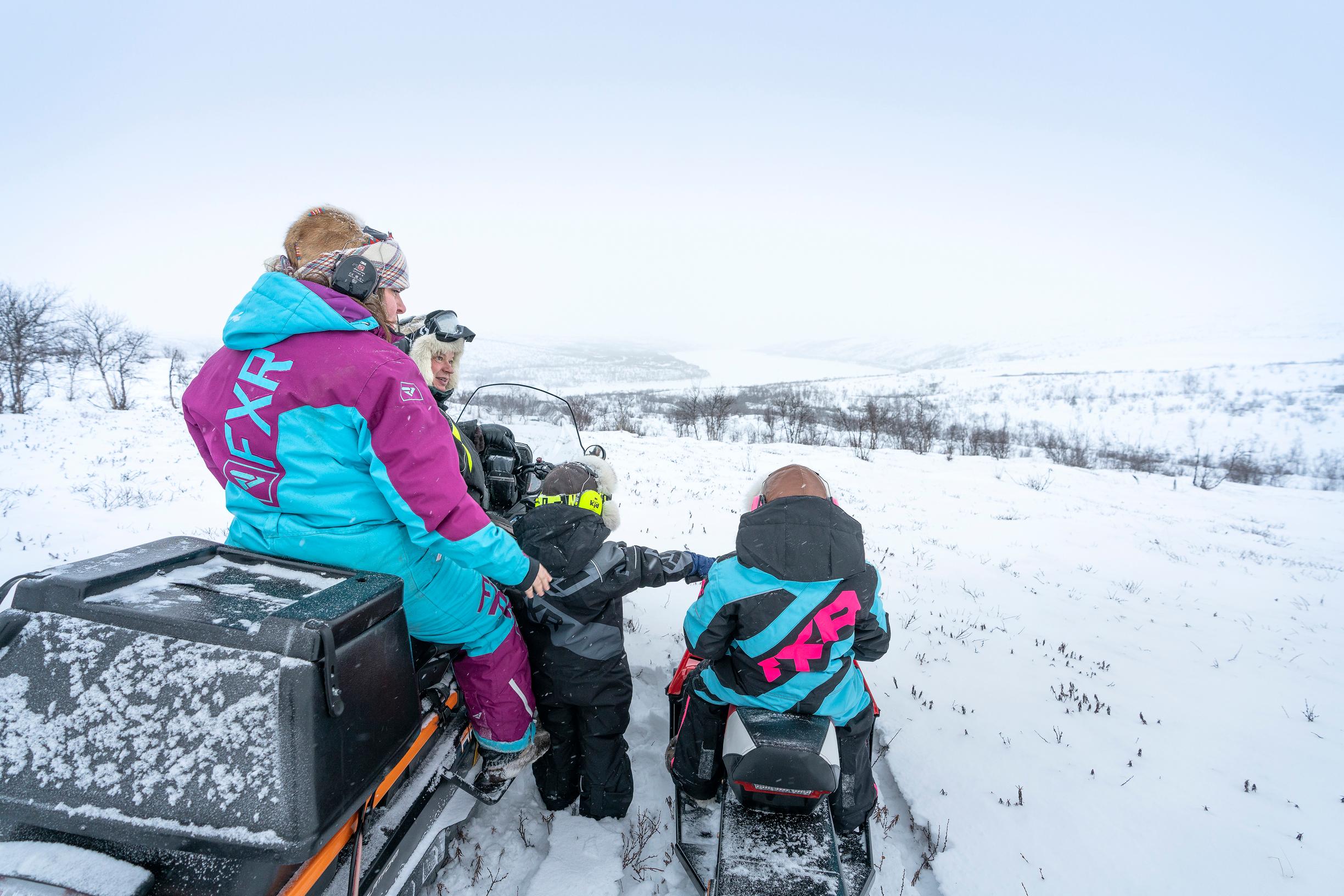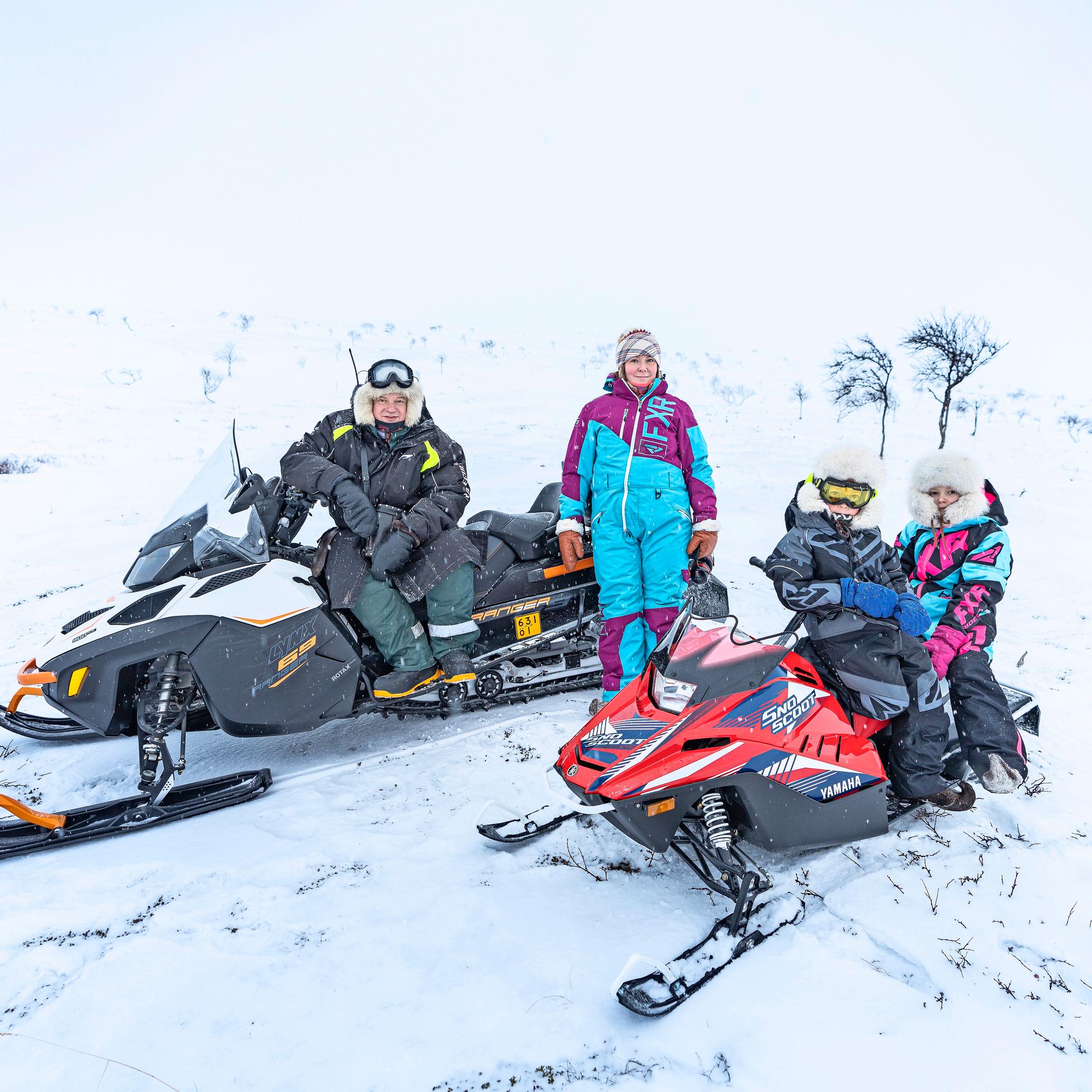 In the afternoon, Anna picks up the children from school and daycare. At home, the family cooks with reindeer or salmon they’ve produced themselves and then heads outside together. The kids practice driving their own snowmobile in the yard. The nearest friend lives half a mile away.