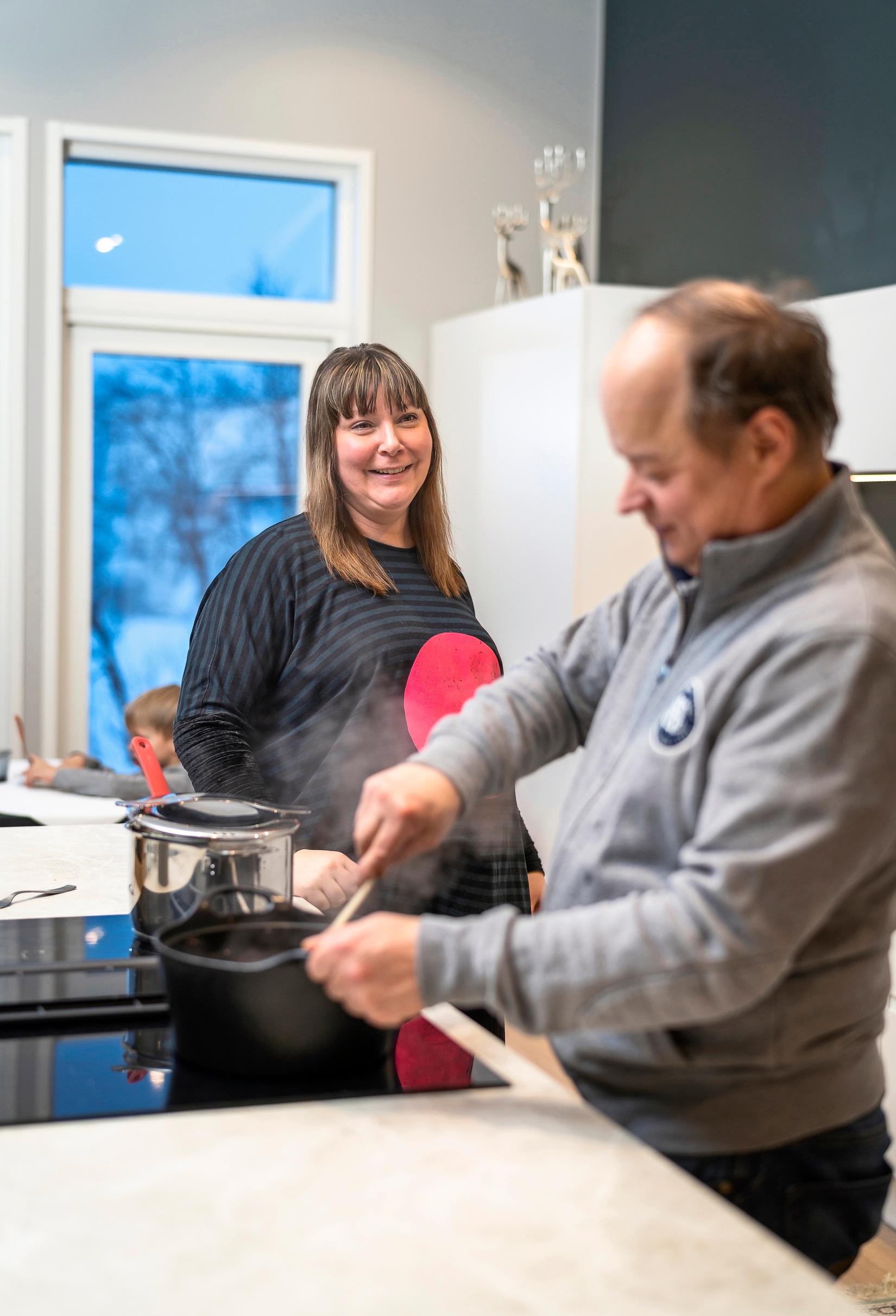 As evening falls, Anna and Asko sit on the sofa to watch Taivaan tulia. It’s the couple’s time together.