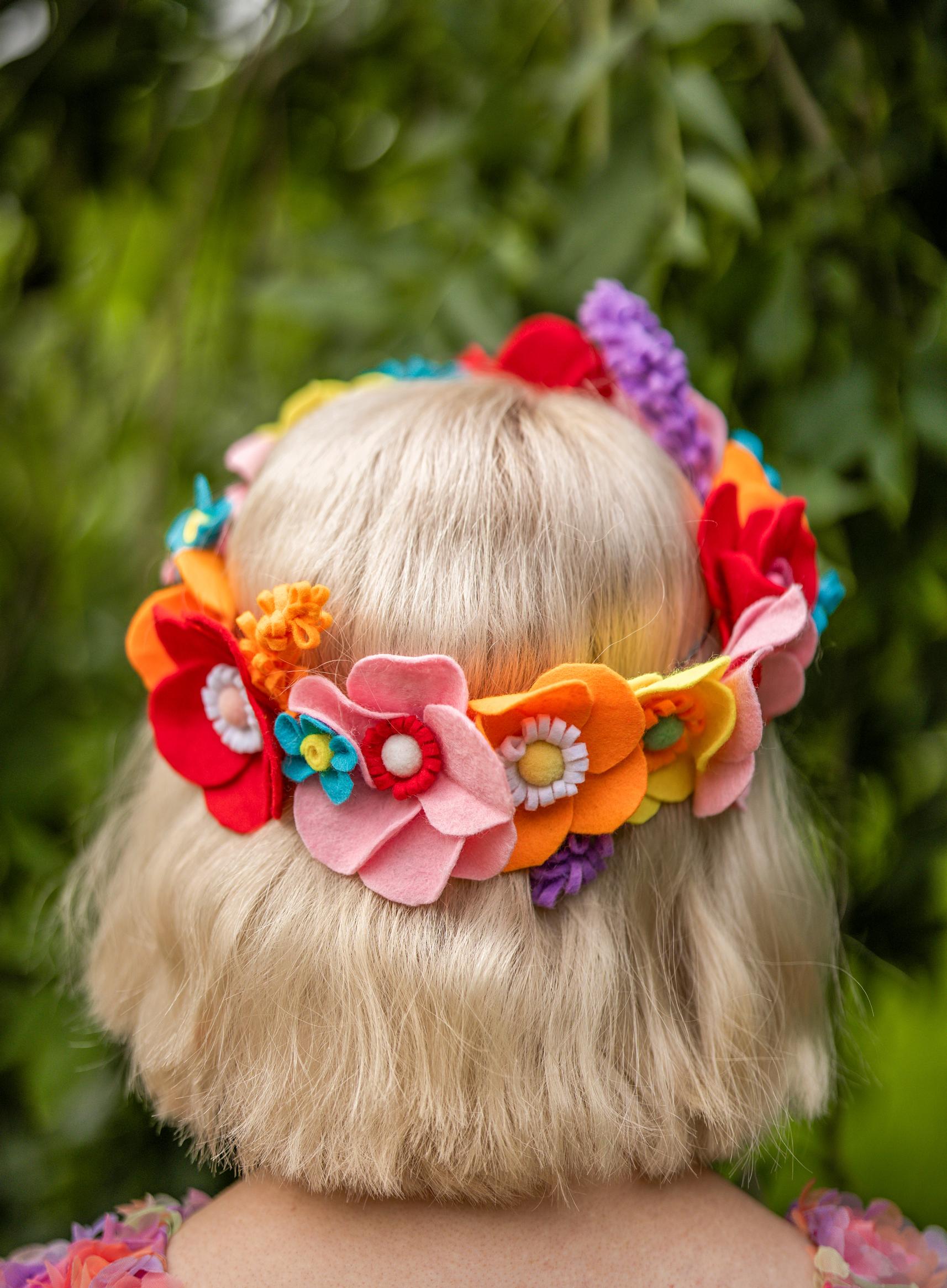 Something stunning for summer parties! Make a long-lasting hair wreath with colorful felt flowers