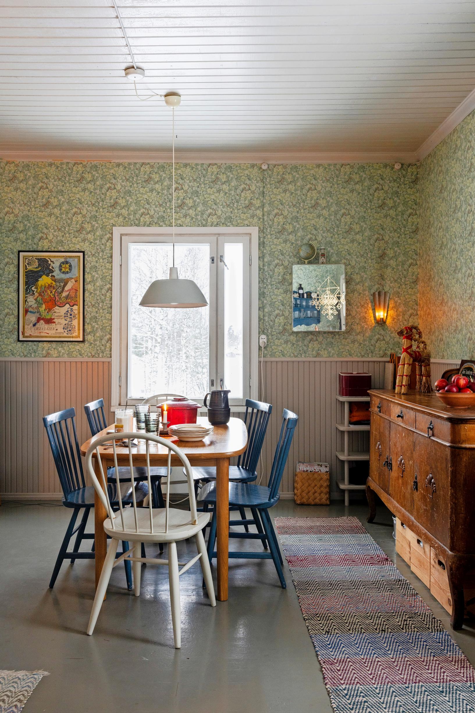 Klaus and Elina abandoned the idea of an allotment garden cottage and instead bought an old wooden house in the countryside. Their renovation and decorating choices show just how much they value the building’s old spirit. At Christmas, the cottage is dressed with traditional decorations like straw goats, himmelis, and a tree brought in from the forest.