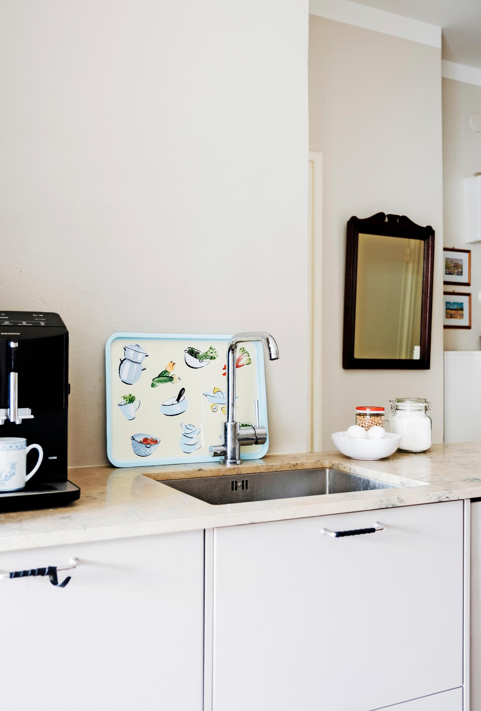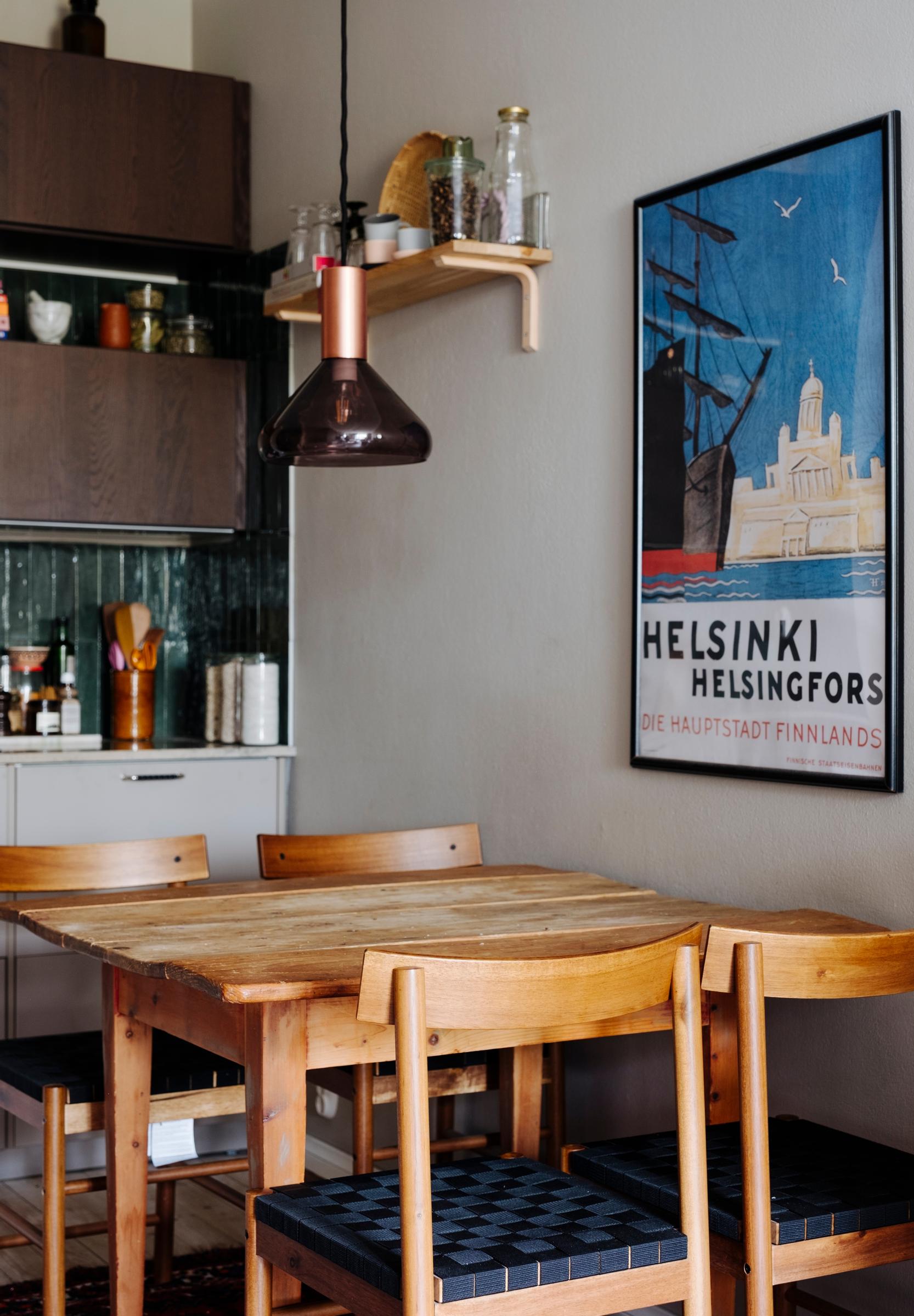 Small apartments with a large kitchen are rare in Kallio. Usually they only come with a kitchenette, but we wanted something else. On the other hand, we didn’t want to start renovating, which is why it took us a long time to find the right place. I appreciate personality in a kitchen. Too many kitchens are modern and bland white, which I find dull.