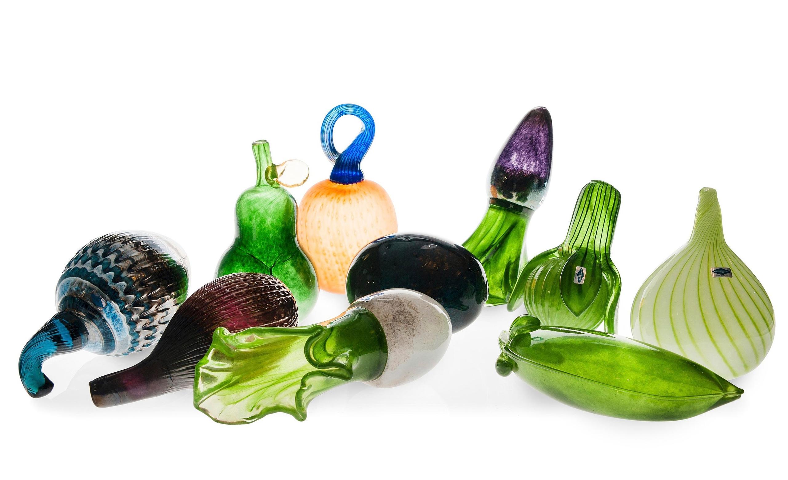 After that, Toikka continued designing glass fruits and vegetables as single items until 2009. In total, some forty different fruit designs were produced, from Finnish berries like strawberries and blueberries to vegetables and exotic fruits such as damsons and figs.