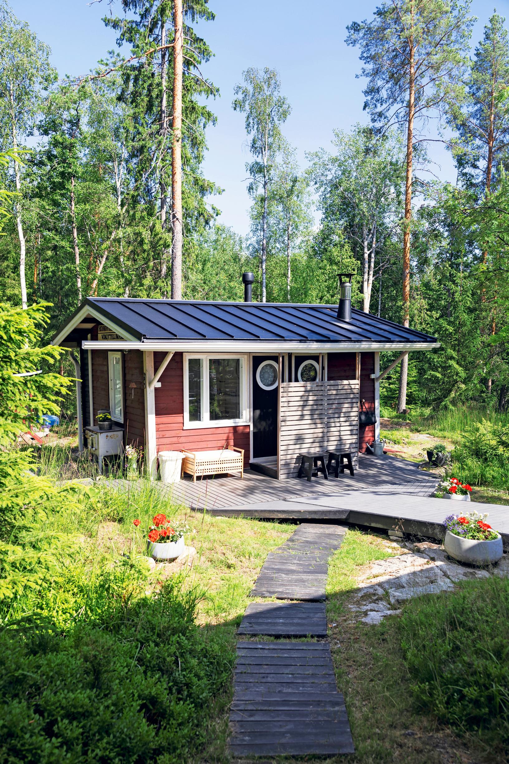 Sometimes an old structure is in such poor condition that only the walls can be saved. That was the case when Heidi and Arto set out to renovate an old outbuilding overrun by mice and bats. Once used as a shed and sleeping hut, the little red cabin was transformed into a sauna with an adjoining lounge.