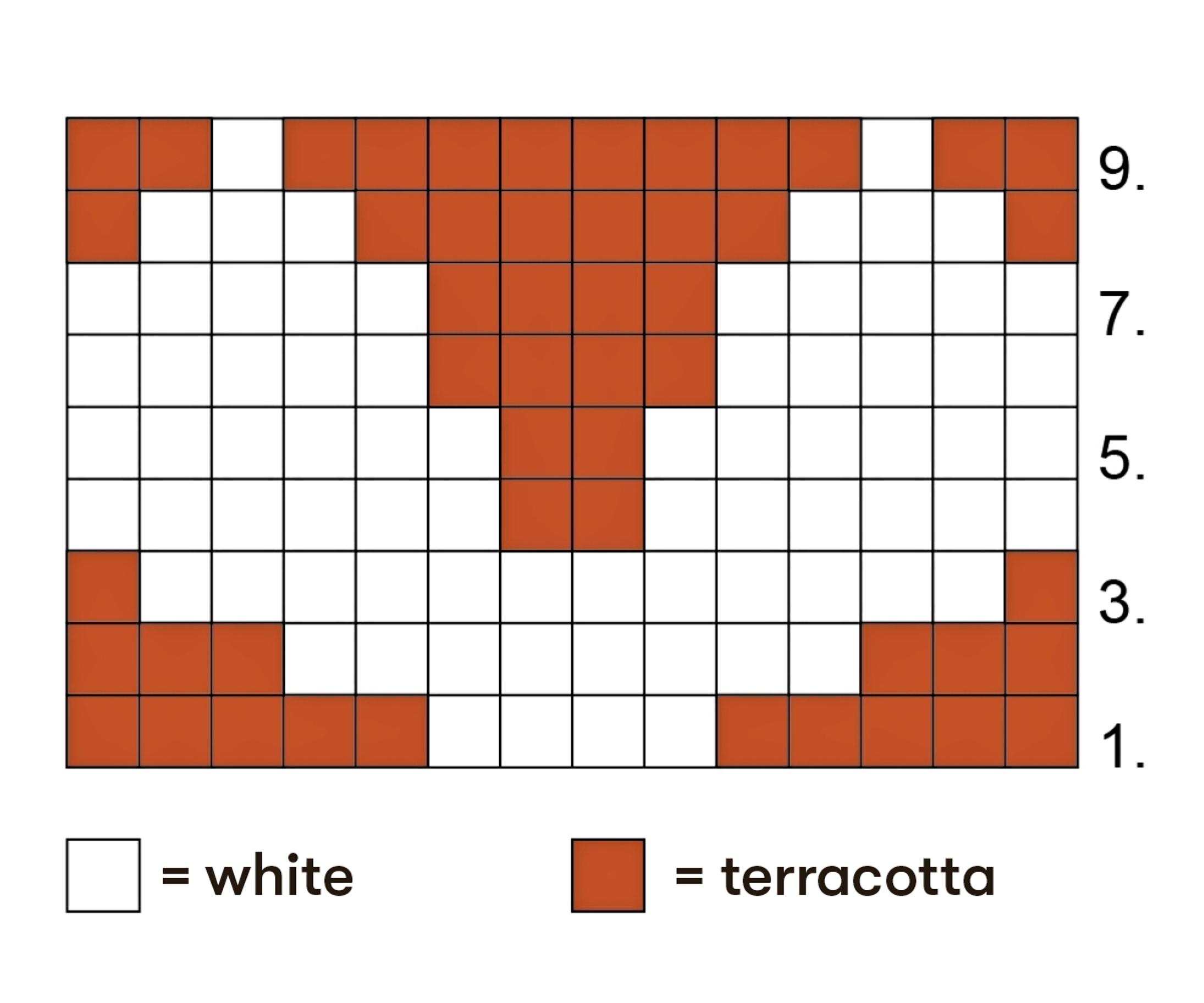 Round 3: 5 ws in terracotta, 12 ws in white, rest of the round in terracotta.