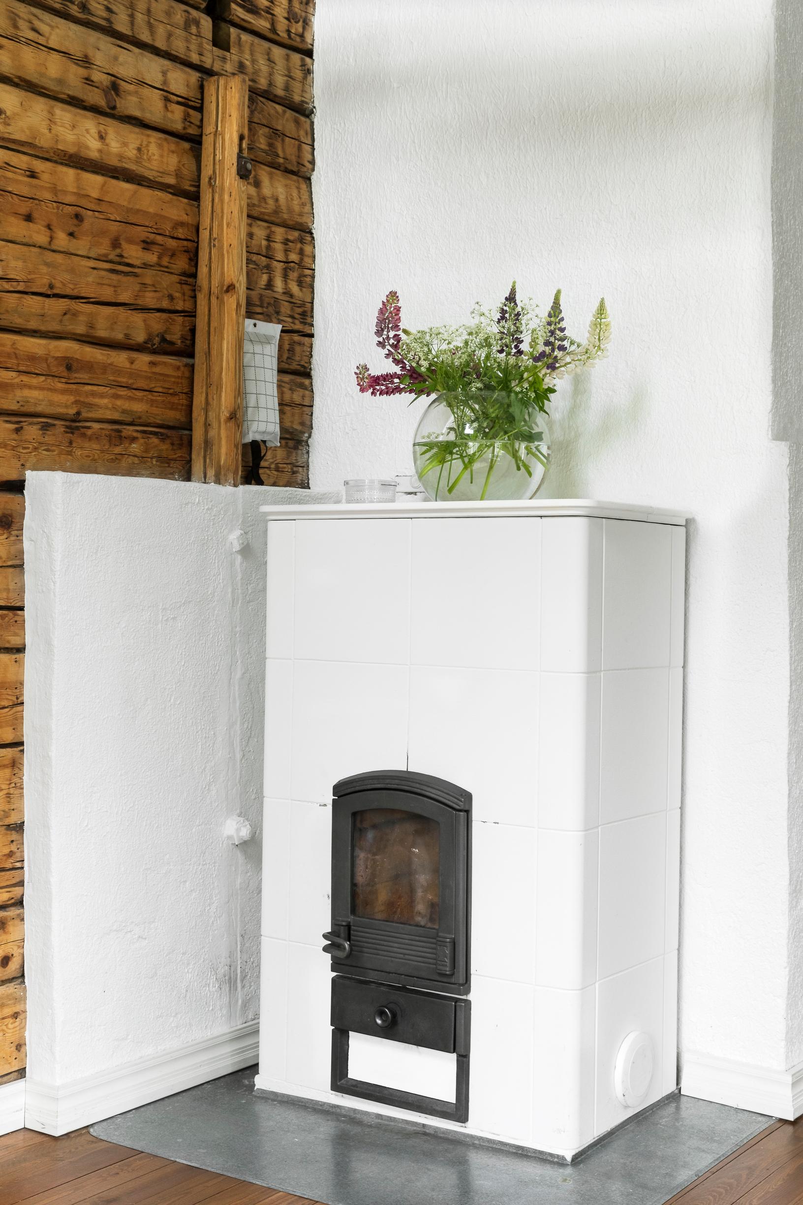 The cabin was built in the 1930s using logs from an old drying barn. In the 1950s, it was expanded with a bedroom and a kitchen. Over time, it acquired some features typical of a post-war home.