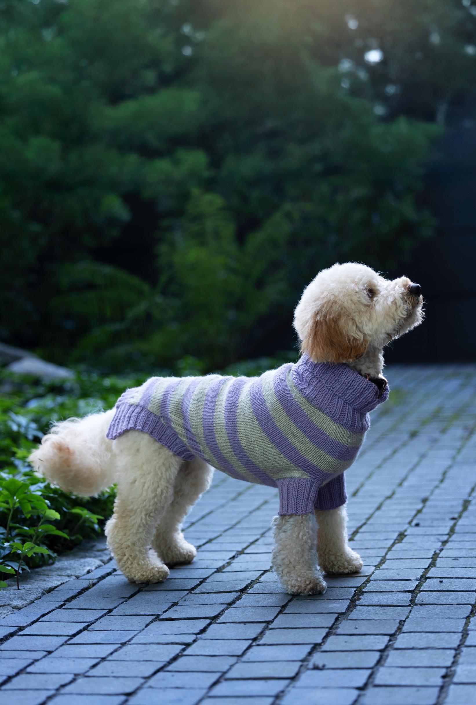 See the striped dog sweater pattern here.