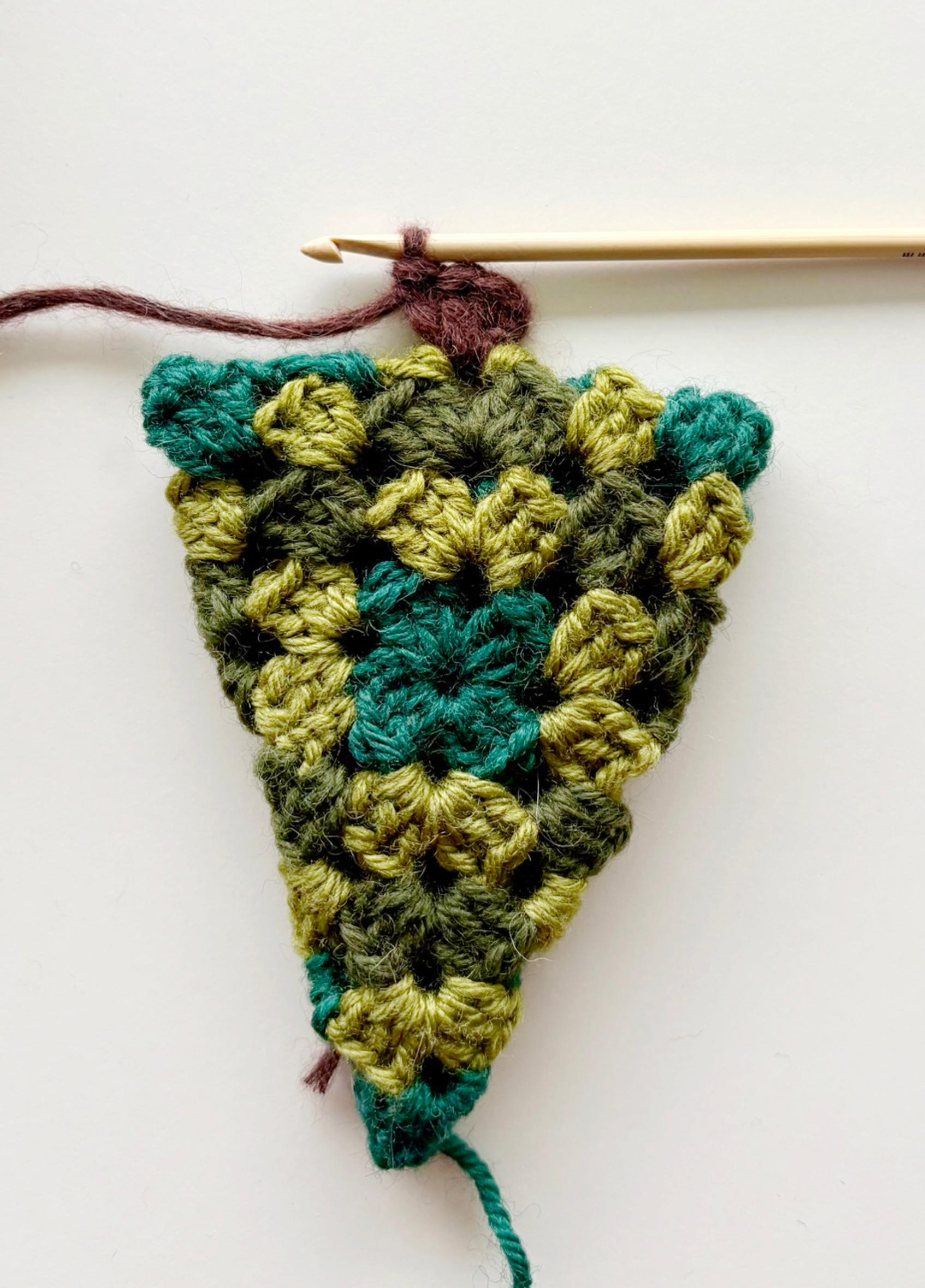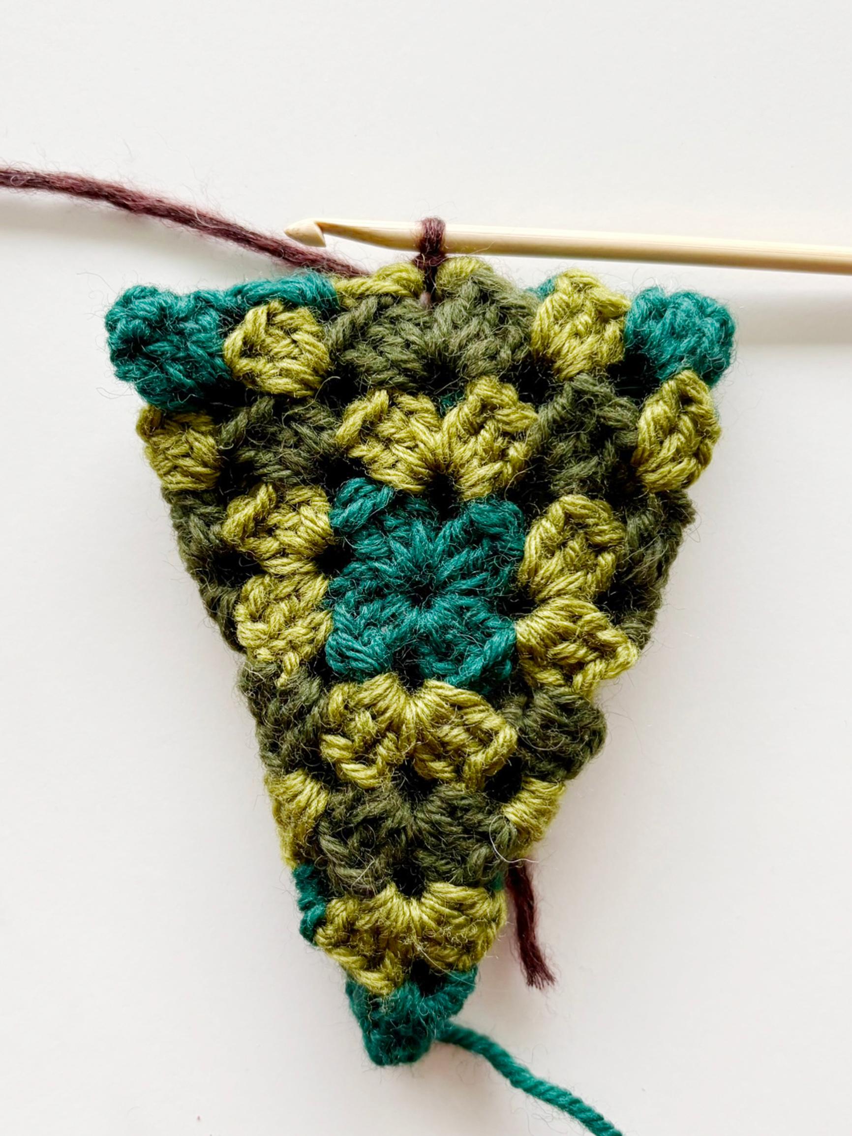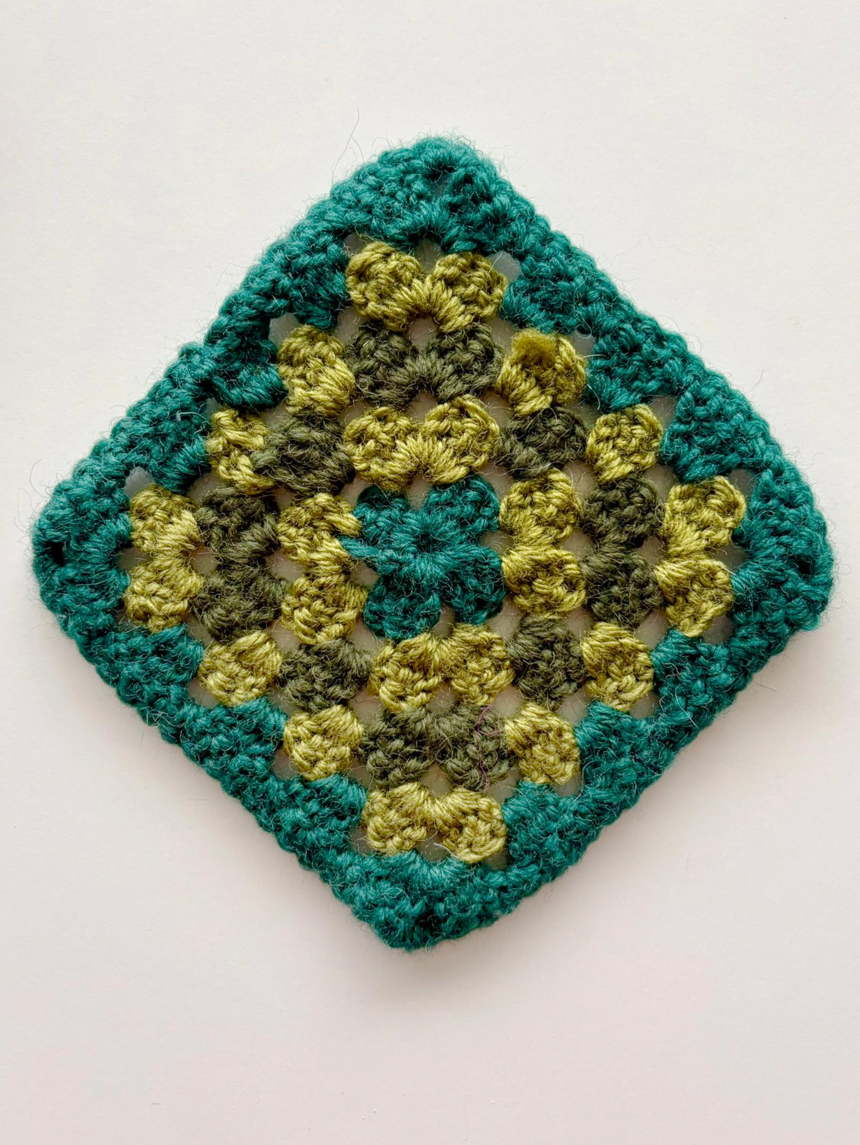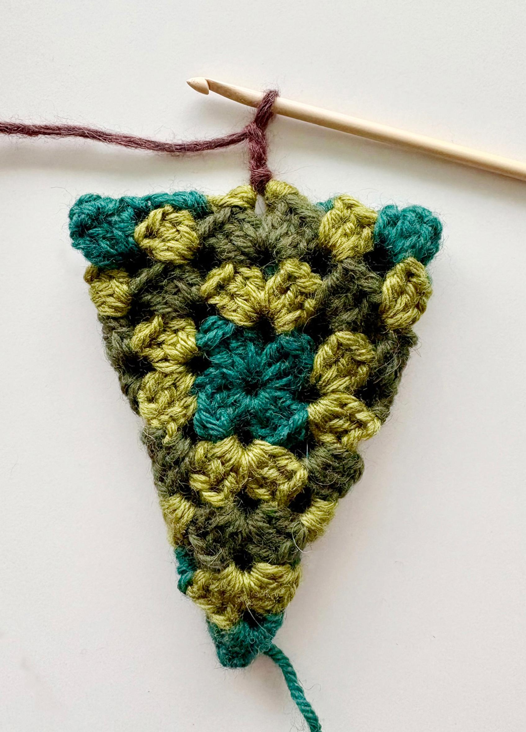 1. Crochet a granny square in any colors you like. The sample trees have six rounds, but you can make your square as large as you like.
