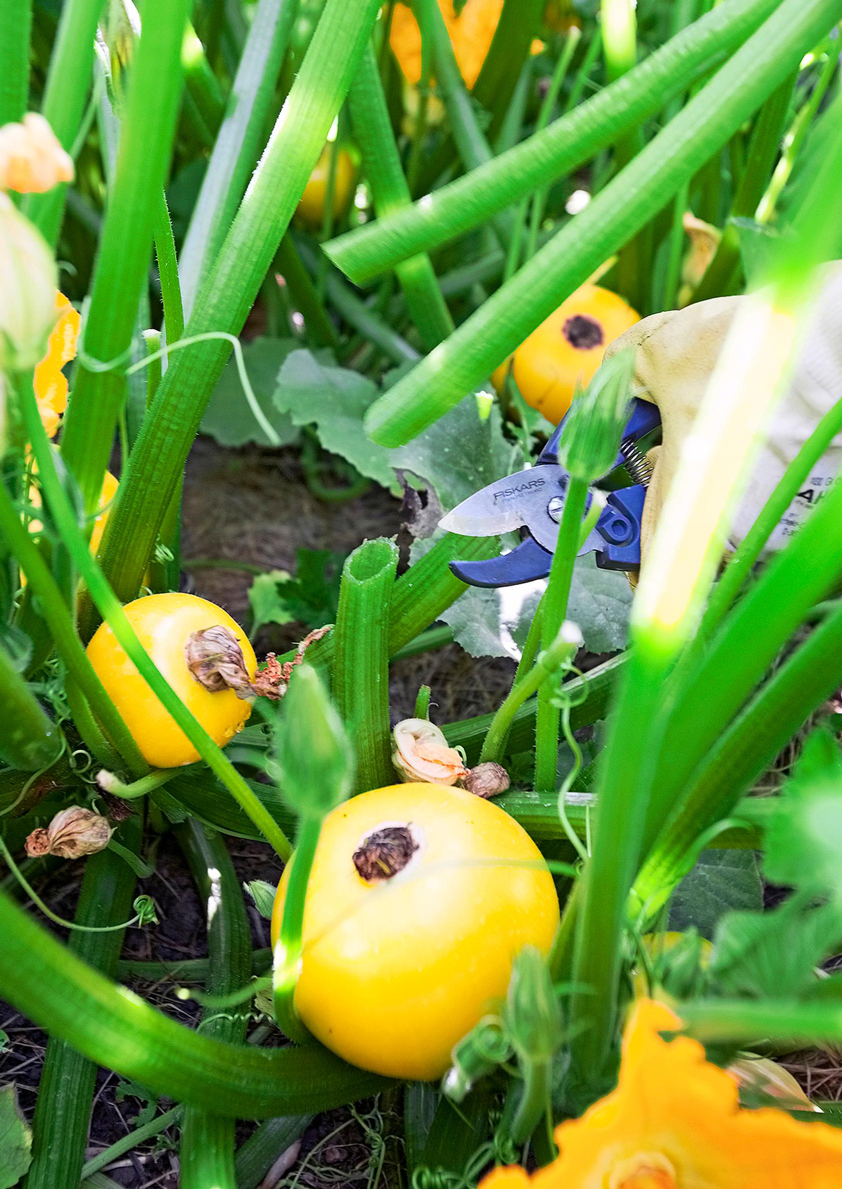 During peak season, you’ll have plenty of blooms to stuff and bake as well. Draw inspiration from southern Europe and pick slender zucchinis before the bright yellow blossom has wilted away.