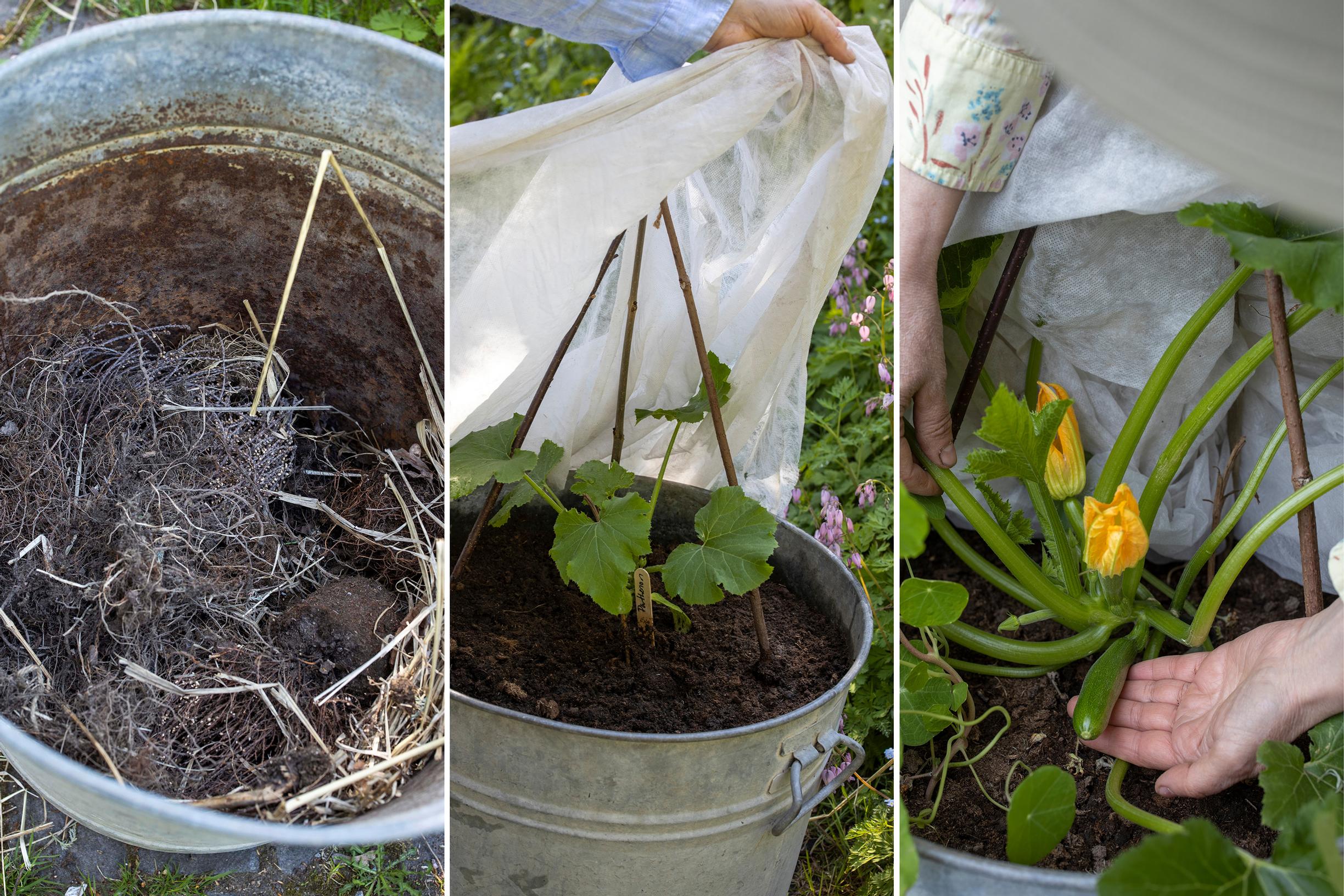 Grow zucchini in a large pot or tub for an early harvest—but don’t plant it in a bucket