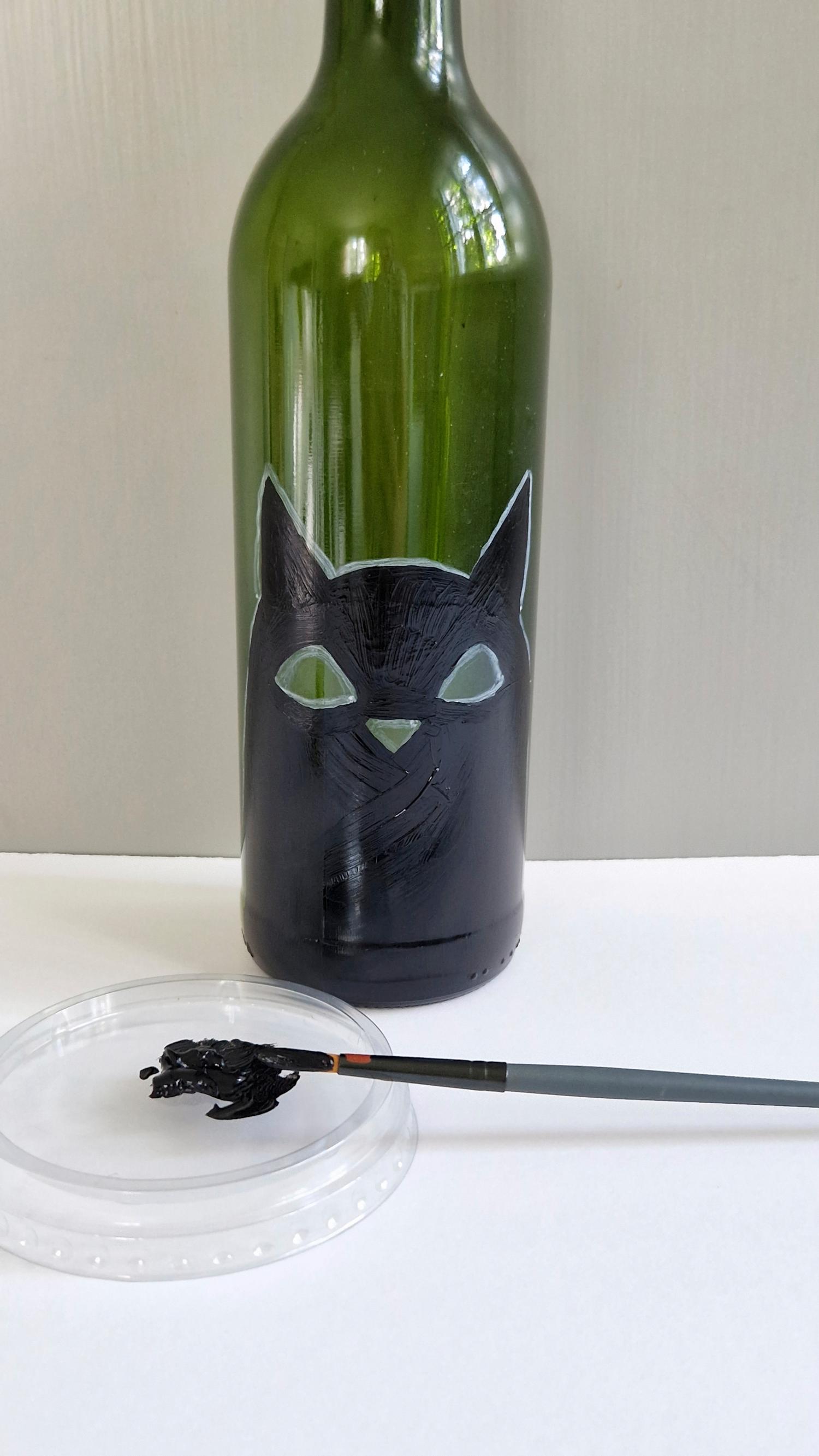 4. The cat’s eyes stand out nicely in yellow. You can also finish the cat with paint markers, which make small details easier to add.
