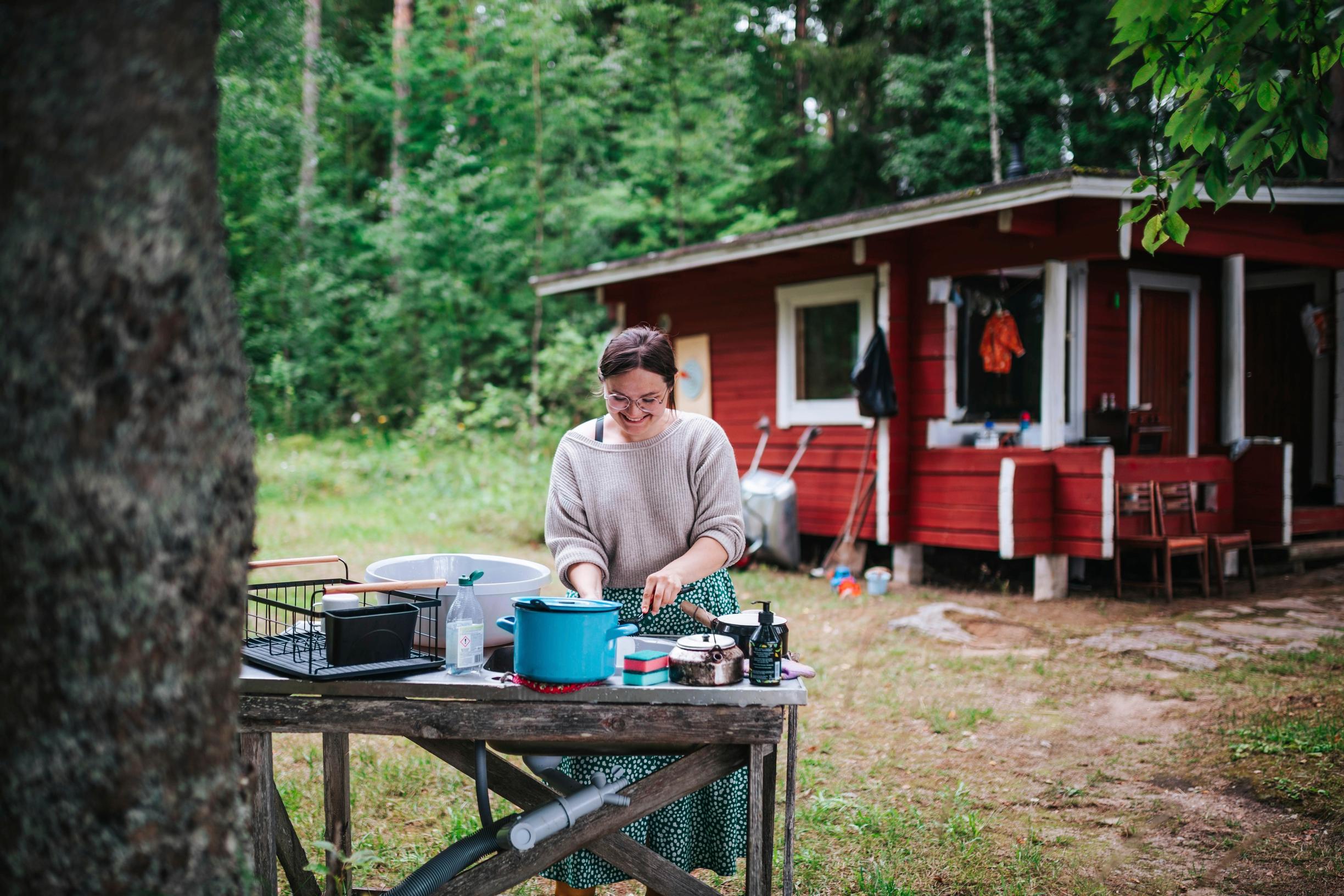 Oh, those were the days when dishwater was carried from the well and heated on the stove until it was scorching hot. For many Finns, washing dishes by hand still feels like the genuine cottage experience.